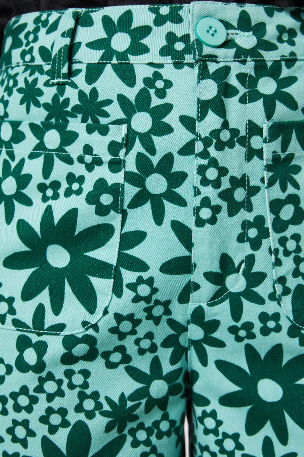 Step out in the Babette Jean, where retro vibes bloom with modern flair, and your legs become the canvas for a 60’s inspired painted daisy print awash in a fresh two-tone palette. These straight-leg floral wonders are your ticket to turning sidewalks into runways, with a zip and button front opening that keeps things sleek and easy. Belt loops await your favorite accessories, adding a dash of your personal flair to every outfit. Cut to a chic ankle length, these jeans flirt with your footwear, ensuring you’ll never miss a step in the style stakes. And because practicality is just as important as looking good, they come equipped with front and back pockets, ready for all your essentials. Crafted from 100% cotton, the Babette Jean invites you to stride into the scene with comfort on your side and a bouquet of style to boot.