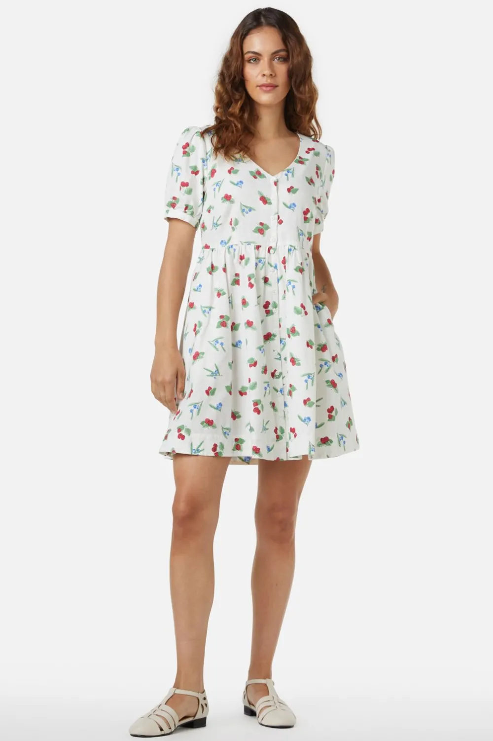 Savor the flavor of style with the Berry Button Down Dress, where every detail is as delicious as a hand-picked berry. This isn’t just a mini dress; it’s a canvas of gorgeous, hand-painted berries that cascade across a soft linen-cotton blend, sweetening your wardrobe with a hint of classic charm. The soft V-neckline leads to a playful button-down front, creating a path as tempting as a berry-laden bush. Puffed sleeves with delicate button cuffs add a dash of whimsy, and the full gathered mini skirt twirls around your legs like a summer breeze through a berry patch. Whether you’re off to a garden party or just feel like dressing up for the farmer’s market, this dress is your ticket to effortlessly sweet style.