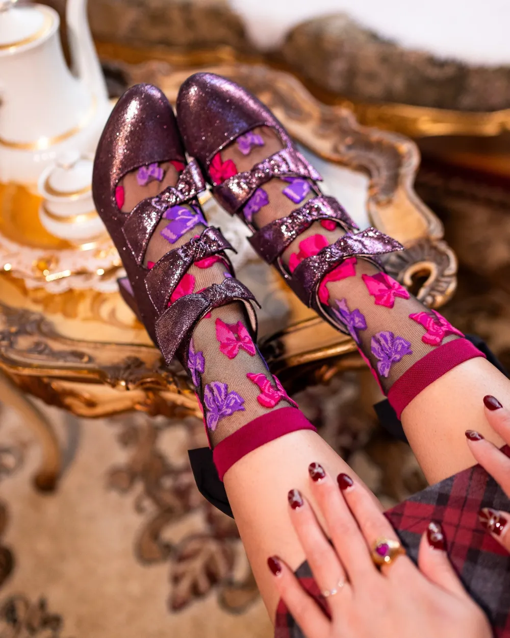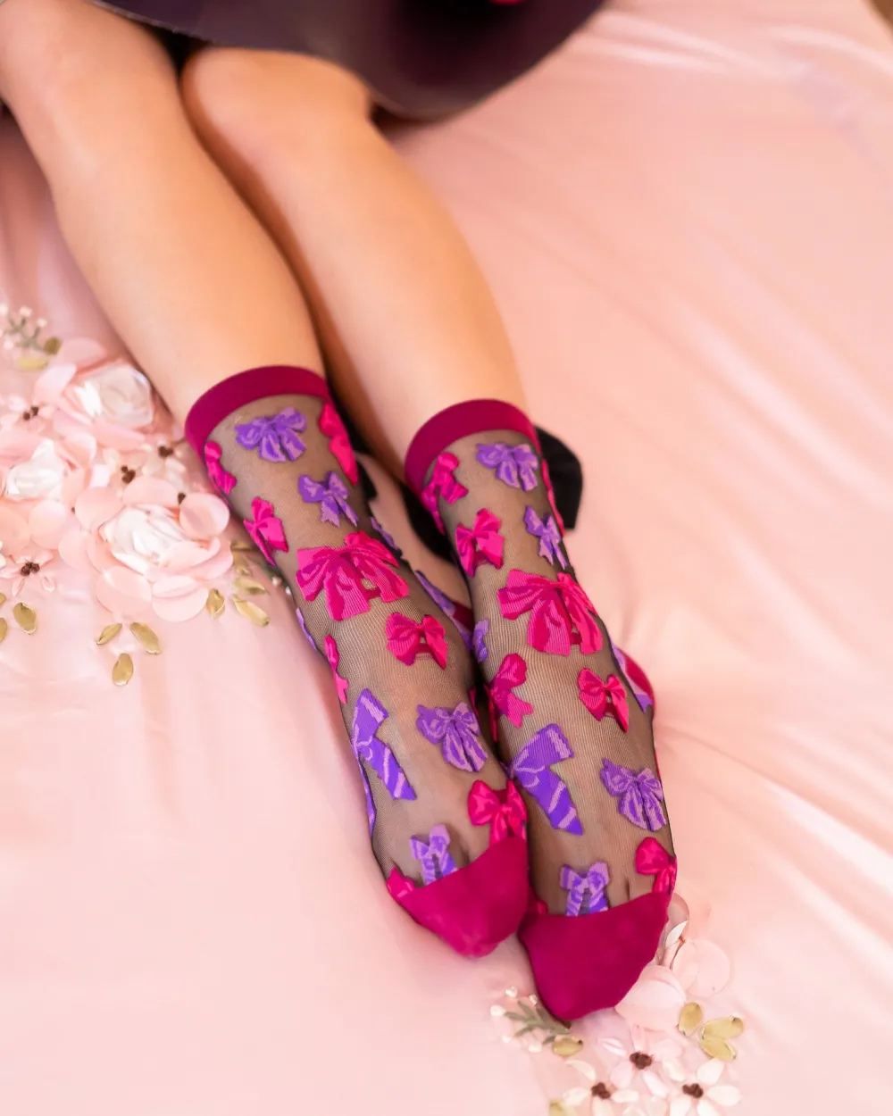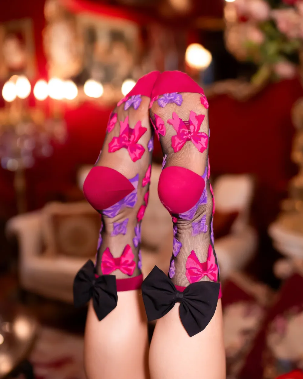 You can’t have too many bows this year! Our elegant black sheer bow socks feature a variety of jewel toned bows to deck out your feet. We took this style to the next level with a giant black bow adorned at the back of the ankle, perfect for peeking out from your Winter boots. Add a feminine touch to your Valentine’s Day outfit!