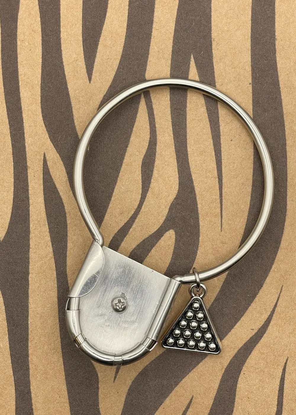 Handmade in California by Bog-Art-Studio, this retro-inspired one-of-a-kind #13 billiard ball keychain features a mini 13-ball, set in a sterling silver serrated bezel with intricate twisted deco wire detailing. Attached to a durable stainless steel jumbo pin measuring 4 by 2.5 inches, this unique accessory is a bold statement piece for pool enthusiasts and vintage lovers alike.