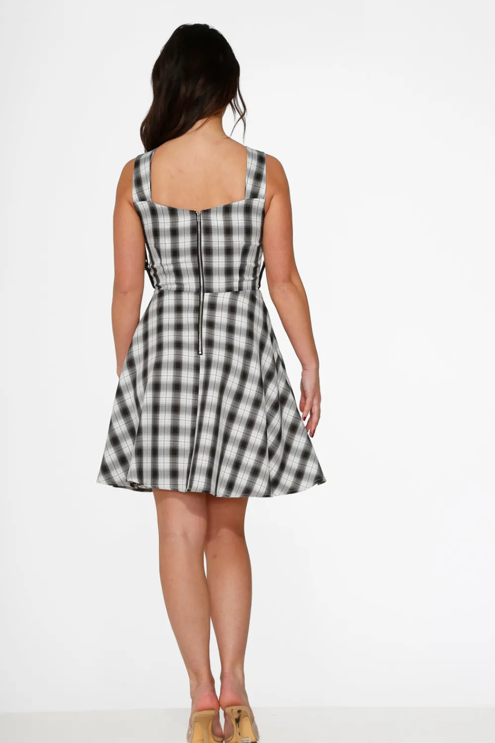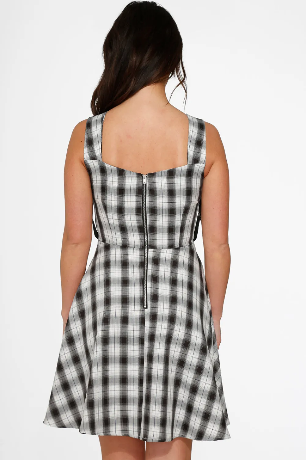 Sweet meets street in the Orchid Bloom Black & White Plaid Corset Dress. With its classic plaid print and striking lace-up corset bodice, this fit-and-flare number is full of bold attitude and vintage charm. Wide straps and a flouncy skirt keep things comfy and cute, while the cinched waist gives it that perfectly edgy twist.