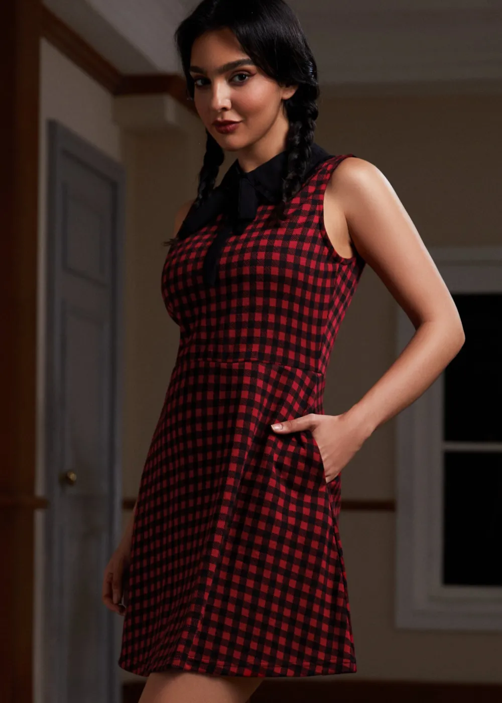 November Nostalgia Flare Dress from our ModCloth namesake label wraps you in the warmth of autumn memories with its black and red checkered pattern. This knit, med-stretch fabric dress combines the joy of days gone by with the comfort of today, featuring a fit and flare silhouette that flatters every body type. The contrast collar and tie bring a playful vibe, while the keyhole closure and pockets add practicality to its charm. Whether you’re sipping cider at a fall festival or strolling through the leaves, this dress is your go-to for making new memories.