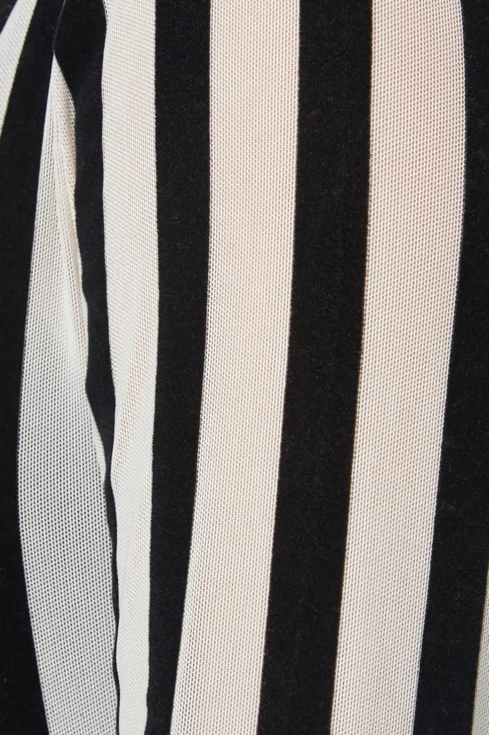 Slip into the charming allure of the Black Friday Flocked Mesh Bodysuit, a perfect blend of comfort and captivating design. Made from a soft cotton-elastane mix, this bodysuit ensures a snug fit while providing enough stretch for all-day ease. Featuring a unique striped flocked mesh pattern, it adds a touch of whimsy to your wardrobe. The long sleeves and mock neck cut elevate the overall sophistication, making it an ideal choice for layering under blazers for work, or pairing with high-waisted jeans for a casual outing. Available in classic black and subtle beige, this bodysuit is a versatile staple that complements any style palette.