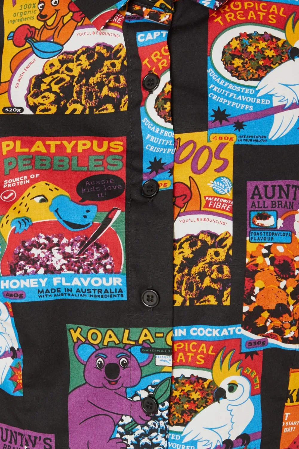 Spoon a dose of quirky charm into your wardrobe with the Cereal Cotton Shirt Dress—an A-line homage to breakfasts and bold prints. This isn’t just your run-of-the-mill printed shirt dress; it’s a statement piece that reminisces about lazy Saturday mornings and the thrill of ripping open a new box of sugary delight. With a front button opening, this dress is a cinch to slip into, offering both comfort and a splash of playful nostalgia. The side skirt pockets are perfect for stashing away treasures or just resting your hands as you strike a casual pose. Fashioned from crisp cotton poplin, it’s as breezy as it is cheeky. And that cereal box print? It’s sure to evoke smiles and spark conversations about your favorite childhood memories. Make breakfast the most important meal of your style with this deliciously different take on the classic shirt dress.