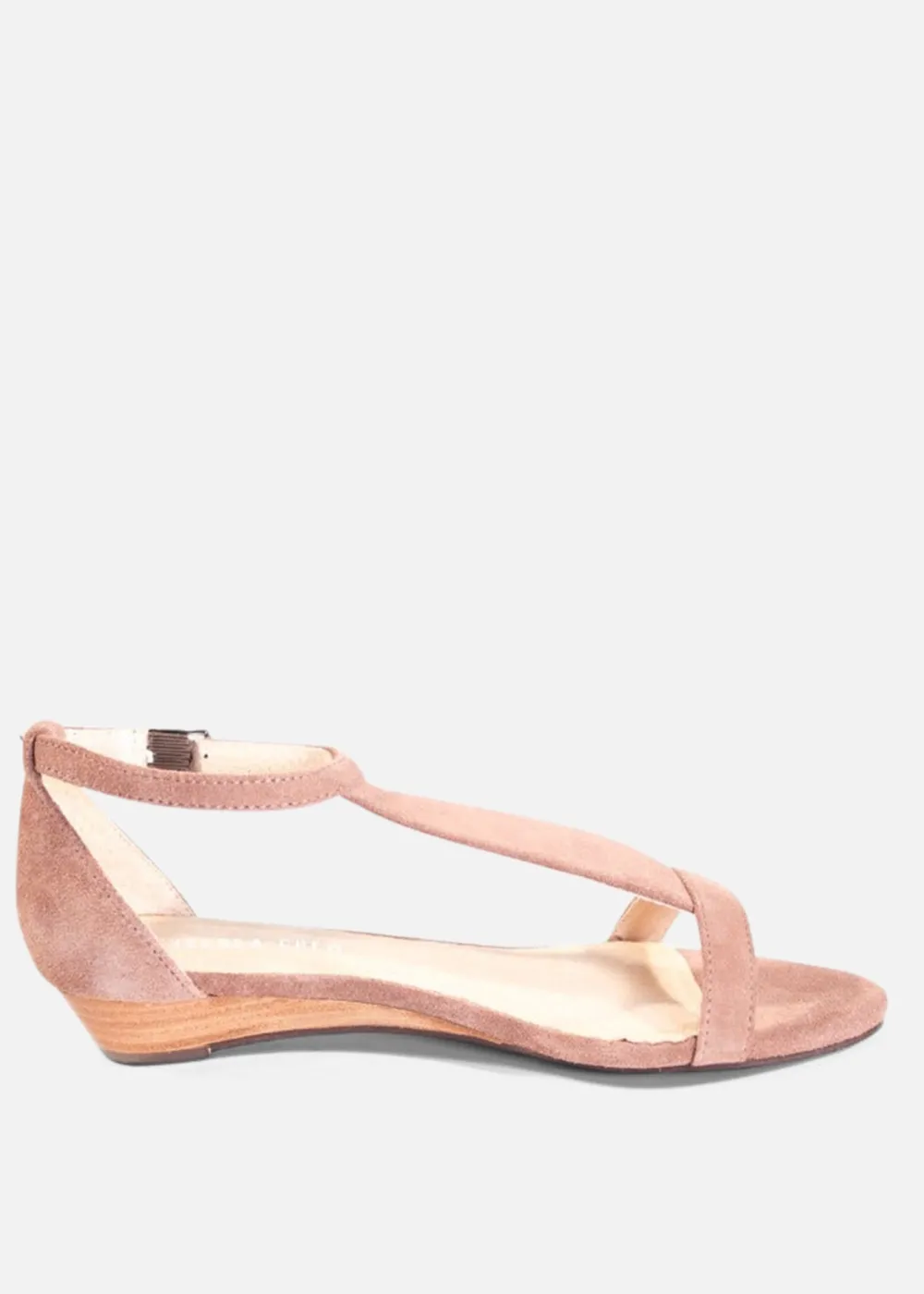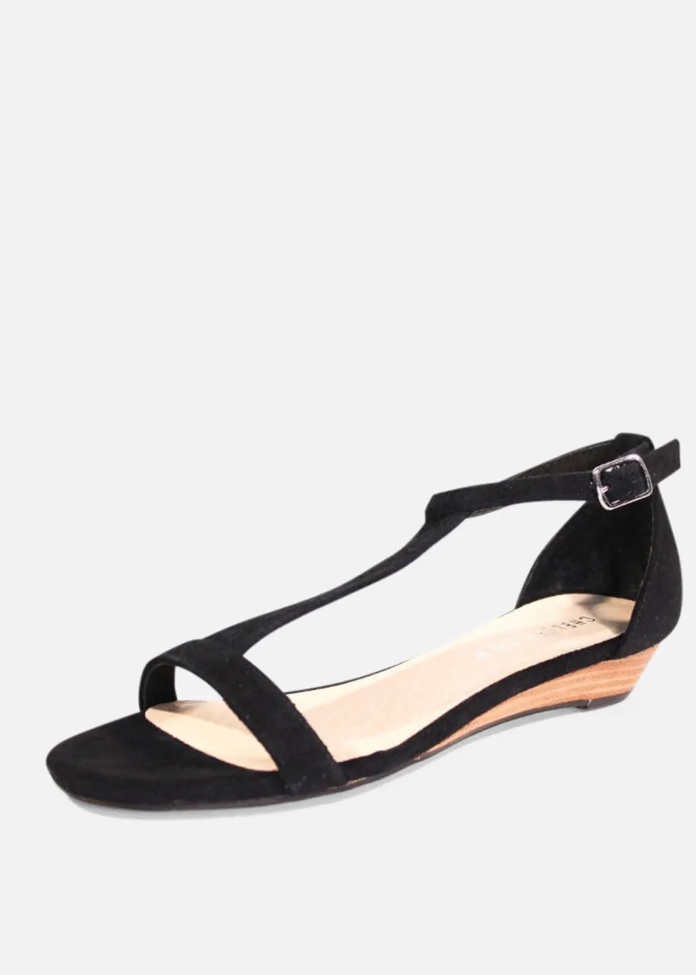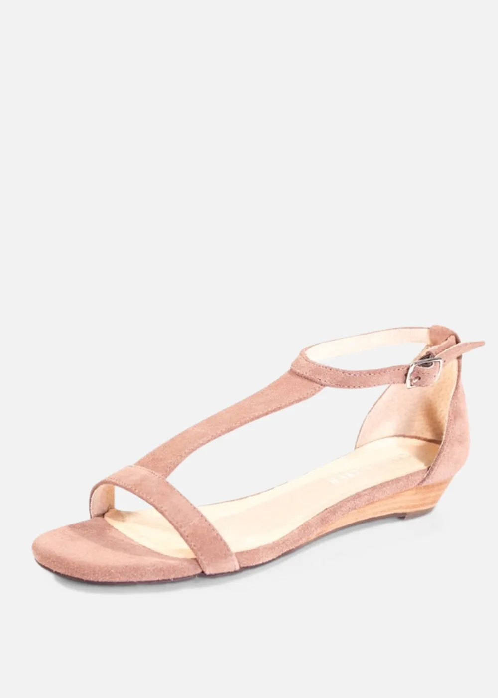 *Upper Synthetic Suede *Leather Lining *T-strap Sandal *Adjustable Ankle Strap *Slightly Heightened Sole