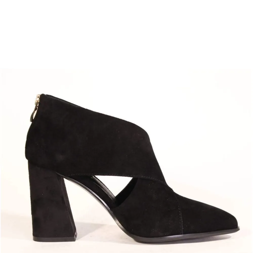 Find pure elegance in the closed toe CHRISTINA suede heeled booties.This pointy toed criss cross upper gives it the edgy look that you’ve been looking for!