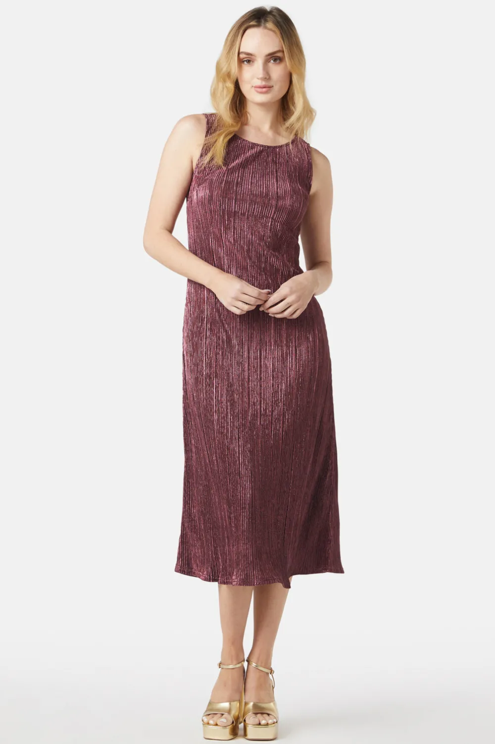 Shimmer your way through the night with the Paris Glitter Dress, your go-to party essential! Back in two fresh colors—rose and silver—this midi-length dress adds just the right amount of sparkle for any occasion. Featuring a rounded neckline and easy slip-on style, it combines simplicity with an irresistible touch of glamour. The metallic polyester crinkle fabric catches the light beautifully, making sure you stand out wherever you go.