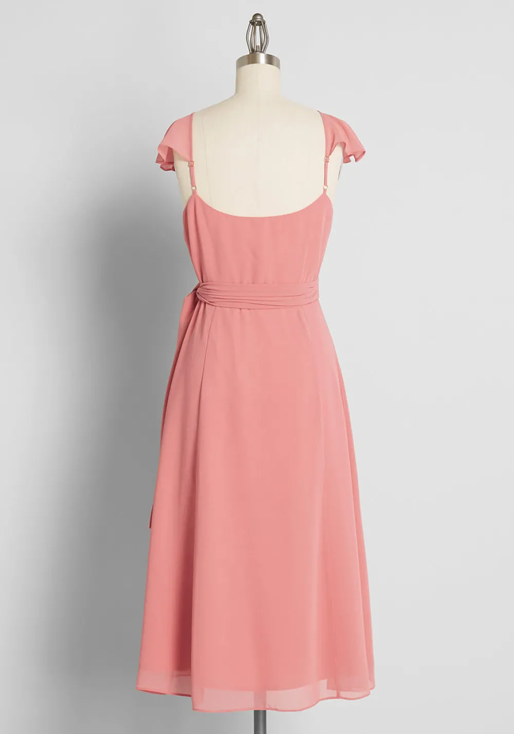 You’ll shine like the sun in this effortlessly chic creamy pink midi wrap dress from Hutch. Made from a lightweight woven fabric and boasting a classic surplice neckline with dainty ruffle trim at the shoulders adorning the adjustable spaghetti straps, adjustable sash tie-belt closure, and a flowy midi skirt, this fabulous fit-and-flare dress is sleeveless for a summer-y retro-fab silhouette that is effortlessly chic.