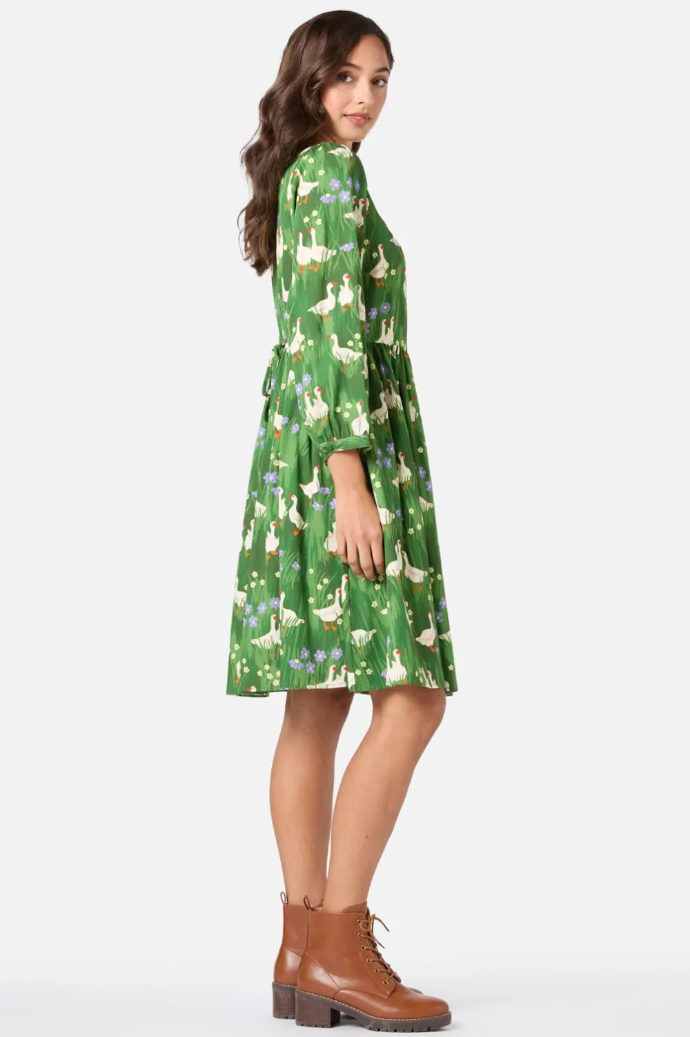 Step into a sunlit meadow with the Lucy Goosey Smock Dress by Princess Highway. Featuring a delightful print of playful geese and tiny meadow blooms, this sweet mini dress is perfect for easygoing days filled with charm and whimsy.