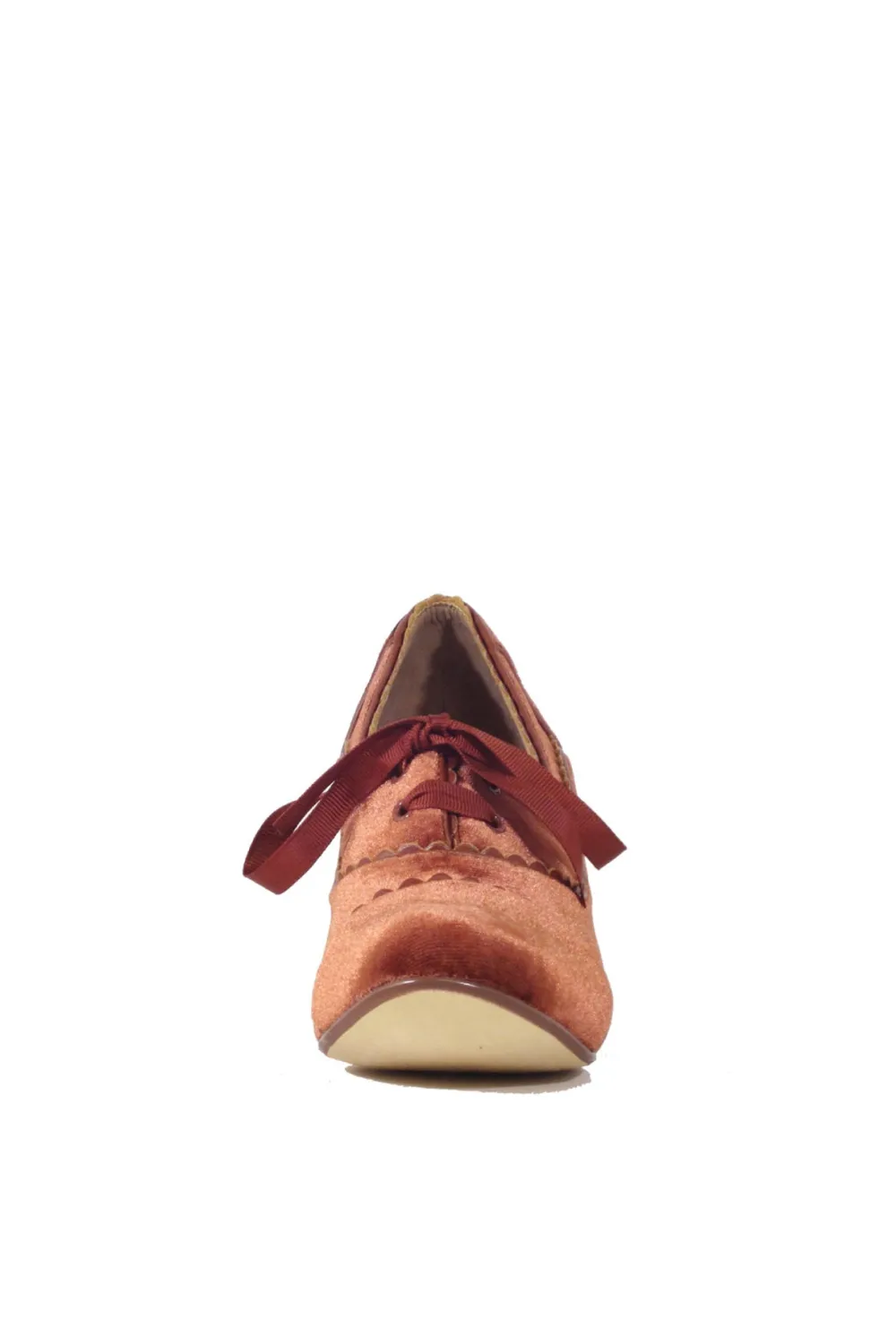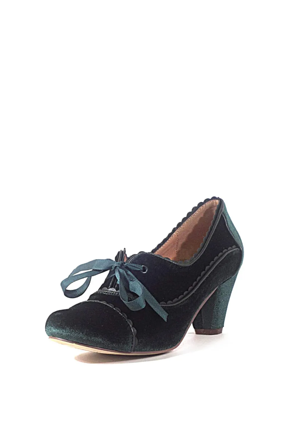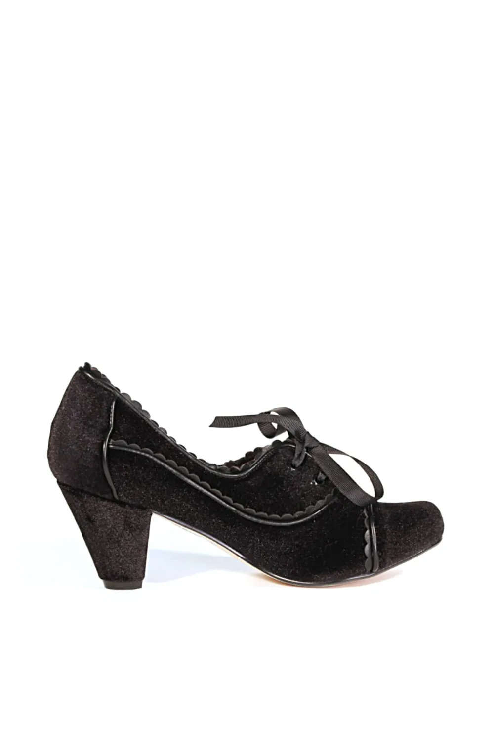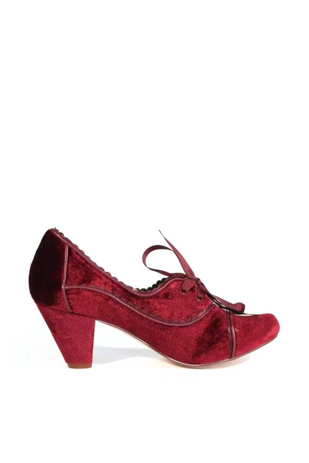 Trendy oxford inspired heel by Chelsea Crew with a scalloped low cut collar. Ribbon lace ties make this shoe extremely flirtatious with a very girly twist.