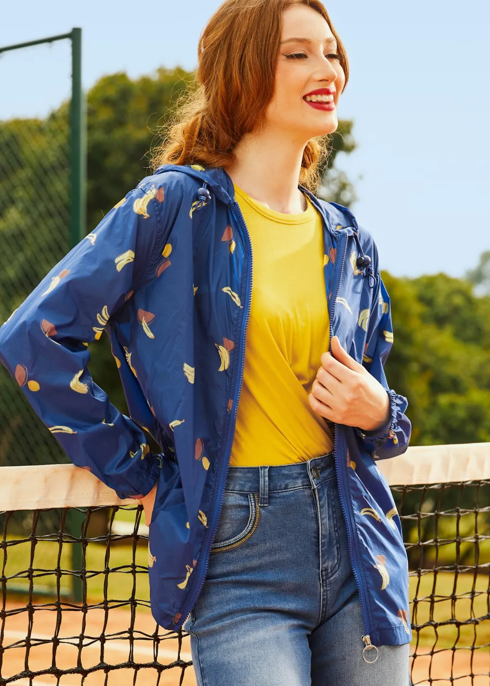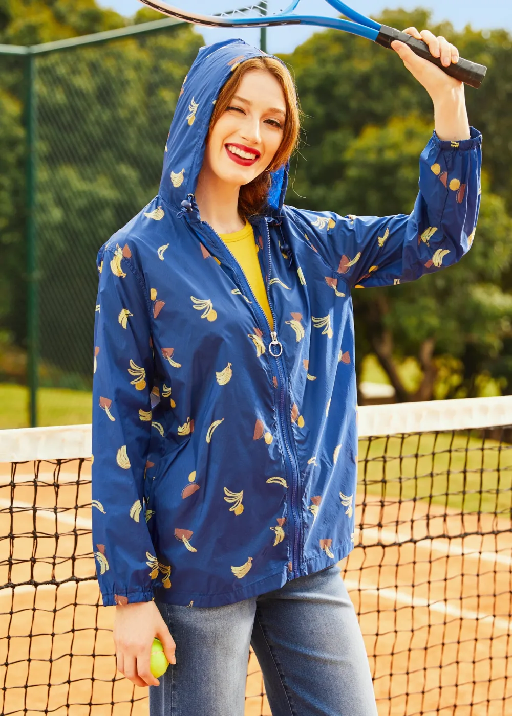 Boat docking and hopping makes for a long day, but your mind will be at breeze with this quirky ModCloth namesake label windbreaker on hand! The quirky and bold hand-illustrated print of yellow bananas, red watermelon slices, and bright, ripe oranges scattered throughout the navy blue background of this lightweight jacket is exclusive to us and will lead to a bright afternoon and memories alike. Made from a durable and water-resistant ripstop weave, so you can rest back easily during those summer days on the water knowing this hooded windbreaker jacket has you covered, both in style and functionality. Rocking blue adjustable bungee-cord drawcords at the hood, a full zip-front with an O-ring metal zipper pull, and elasticized cuffs and hem that help keep you dry by sealing the water out, this lightweight layer will protect your shoulders from either sun or salty winds while you sail, stroll, or sit back and relax! Can you say, “Sail Yeah!”?