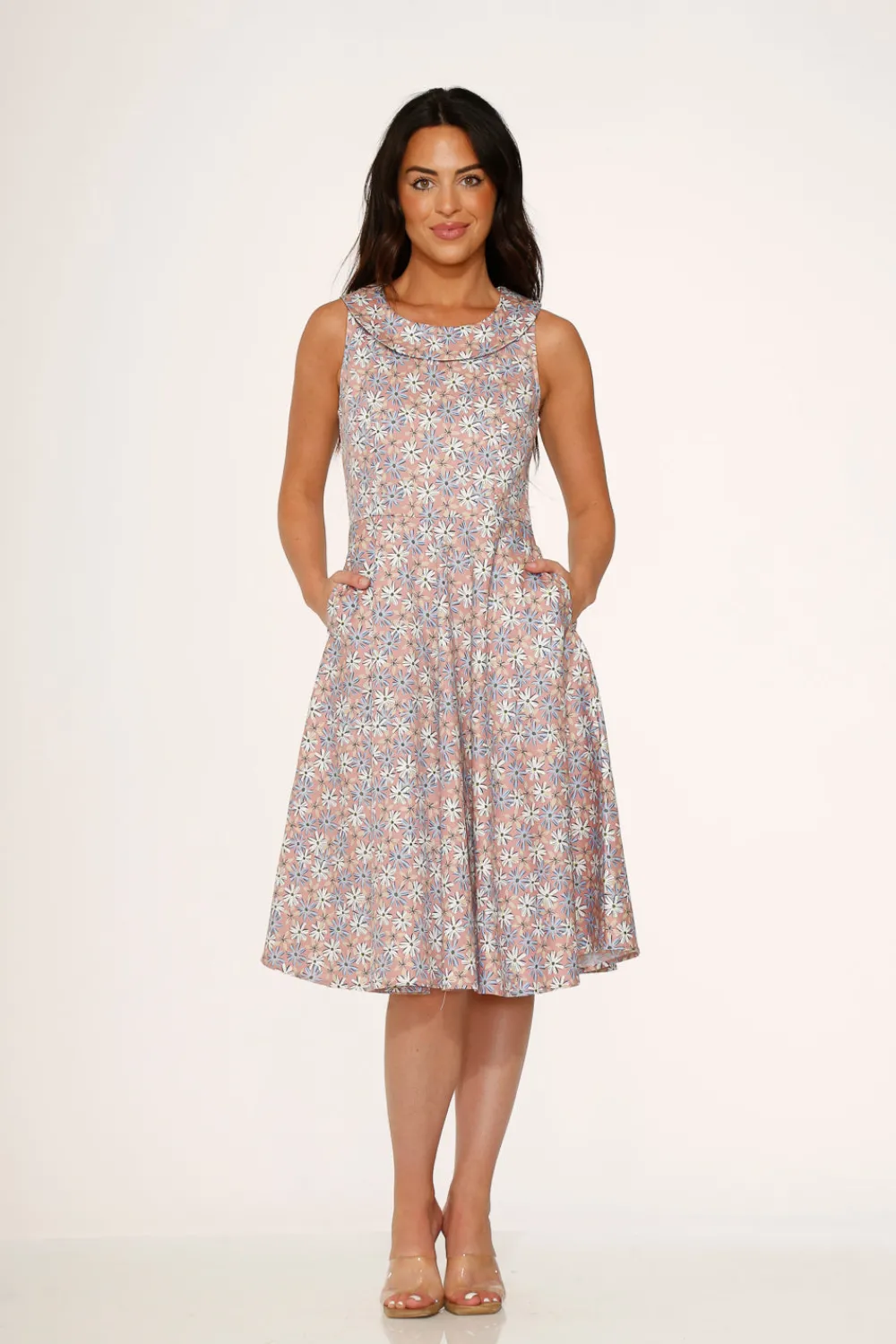Step into effortless charm with Orchid Bloom’s Pink Daisy Floral Swing Dress. Featuring a soft pink hue adorned with delicate daisy prints, this dress blends vintage-inspired elegance with modern comfort. Perfect for garden strolls, brunch dates, or any occasion that calls for a touch of romance and grace.