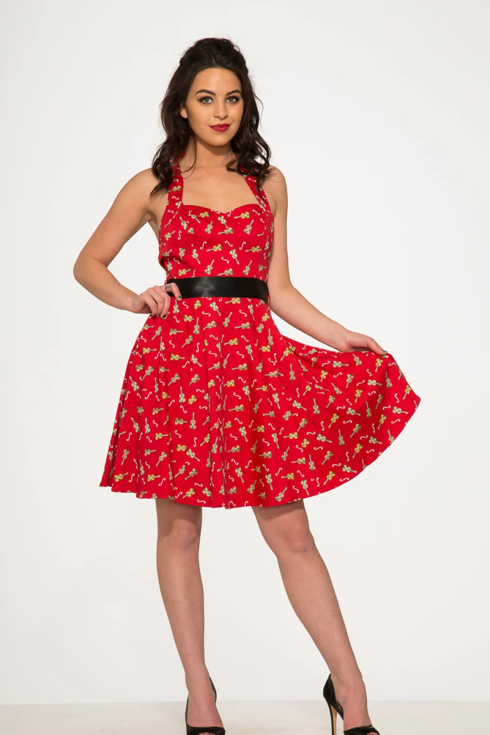 Cue the compliments in the Orchid Bloom Red Violin Halter Swing Dress! Featuring a charming allover print of violins and bows atop a bold red backdrop, this halter-neck beauty strikes a perfect harmony between playful and poised. The full swing skirt adds vintage flair, while the soft cotton-spandex blend makes every twirl feel as easy as a Sunday serenade.