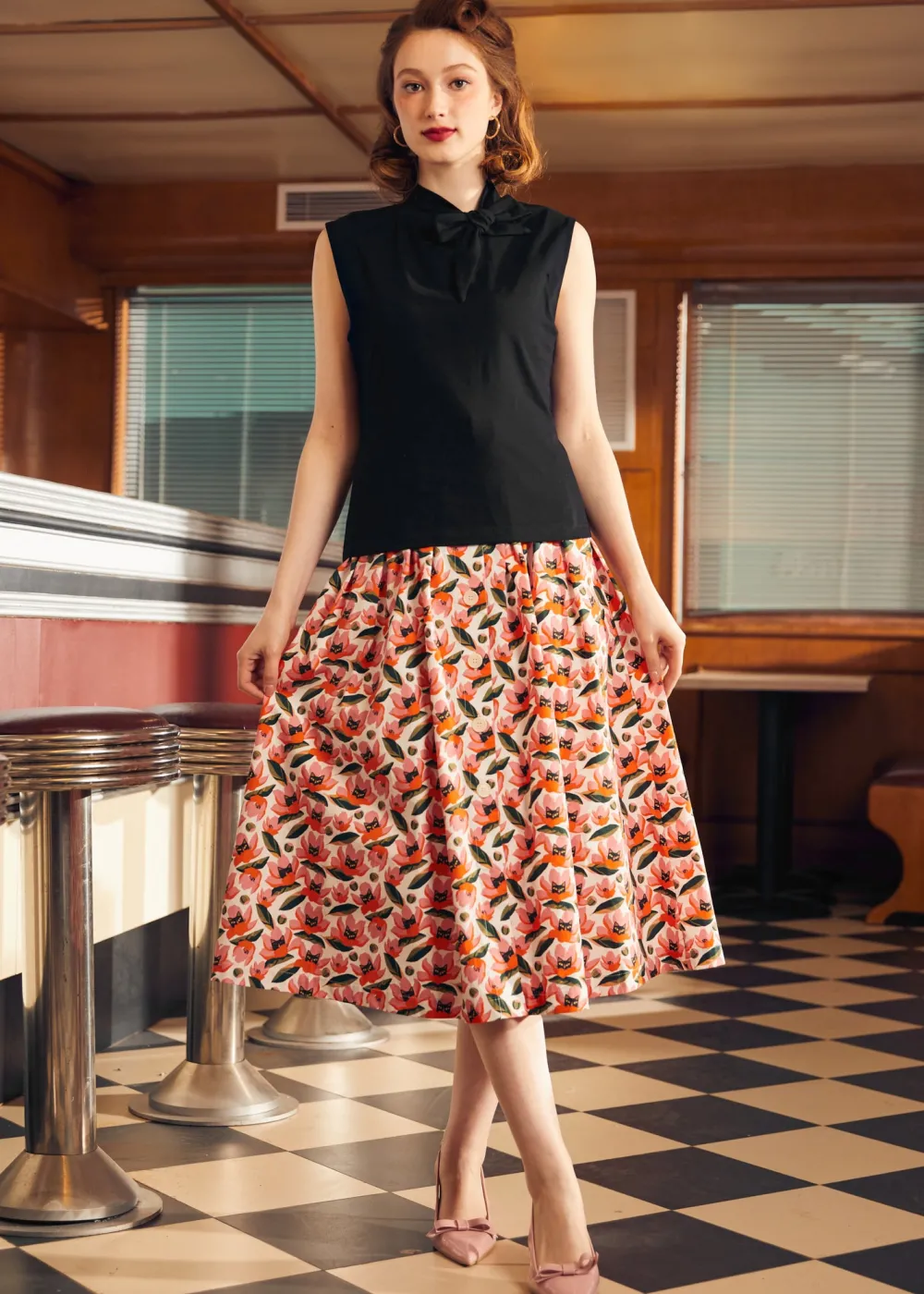 Model Measurements: Height 68/Bust 31.5″/Waist 24″/Hips 36″