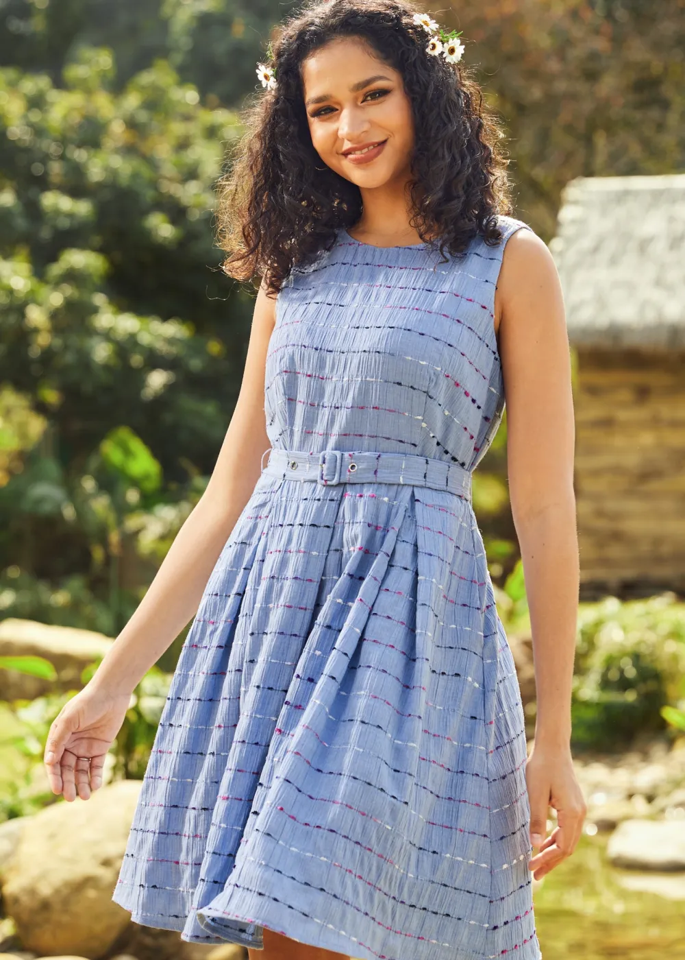 Set sail into spring with the Sailor’s Reverie Fit & Flare Dress from our ModCloth namesake label. This denim blue dress showcases a nostalgic boatneck coupled with a pleated, flared silhouette that flatters every figure. Functional pockets and button detailing add a practical touch while maintaining a polished look. Perfect for weekend outings or a casual spring soiree, this dress blends comfort with classic style.