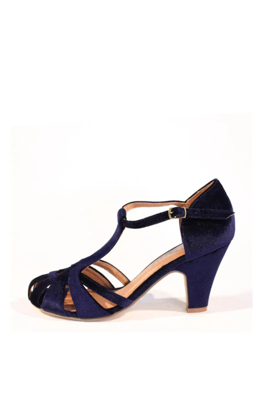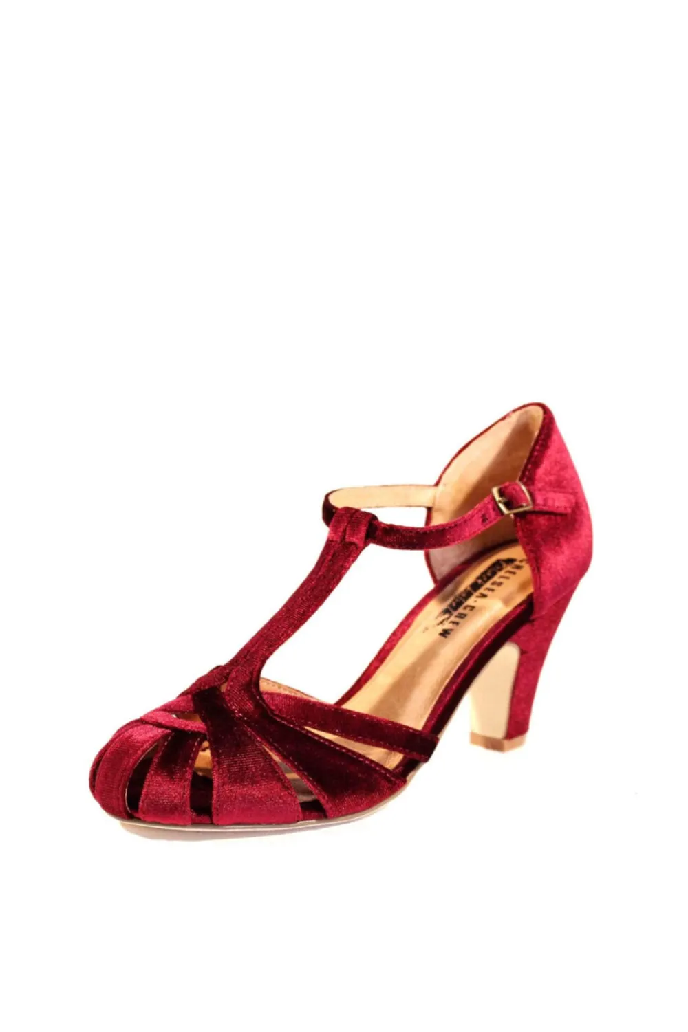 Chelsea Crew Black Label Sergi- velvet is a romantic t-strap silhouette thats made for a must-have heel.
