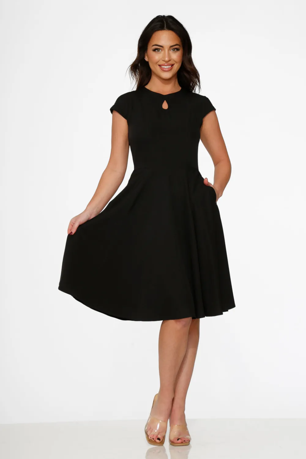 Timeless, twirl-worthy, and effortlessly chic—the Orchid Bloom Black Swing Dress is your new go-to for any occasion. With its classic silhouette and soft, stretchy fabric, this dress moves beautifully with you from brunch dates to dance floors. A true wardrobe staple with a vintage spirit and modern comfort.