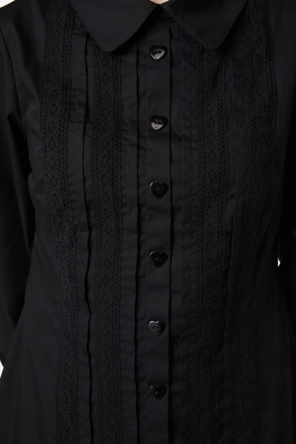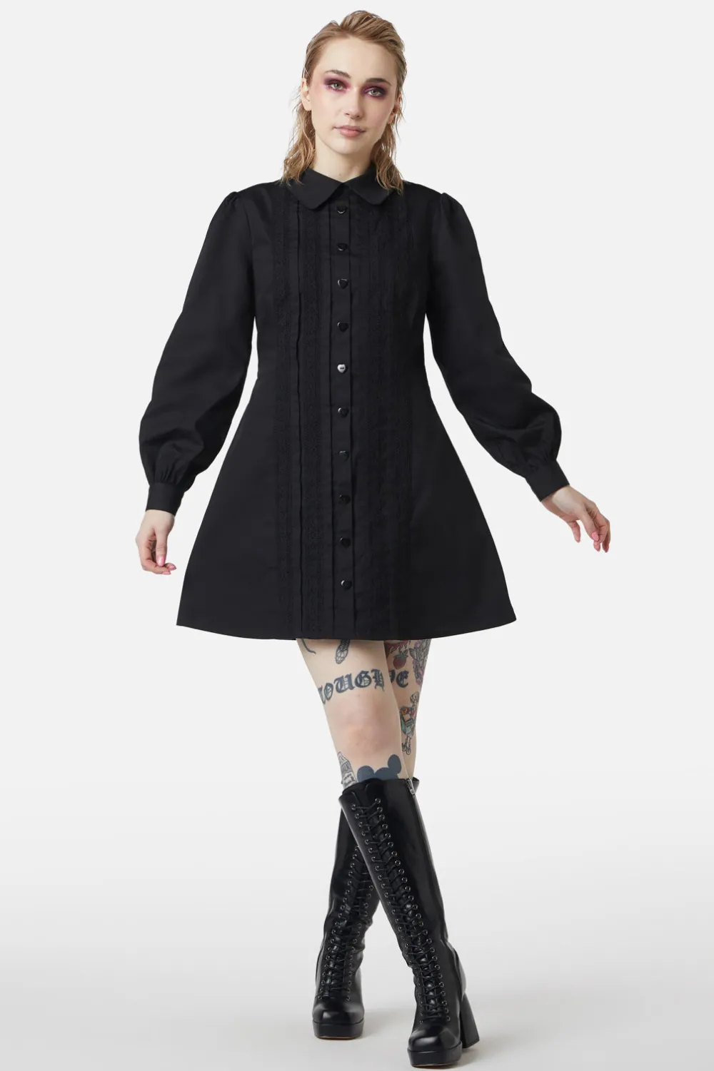 Embrace a touch of playful elegance with this Baby Doll Collar Dress by Dangerfield. This charming piece features long sleeves and a contrast collar that brings a vintage-inspired flair to your look. The heart-shaped buttons down the front add a sweet detail that’s sure to steal your heart.