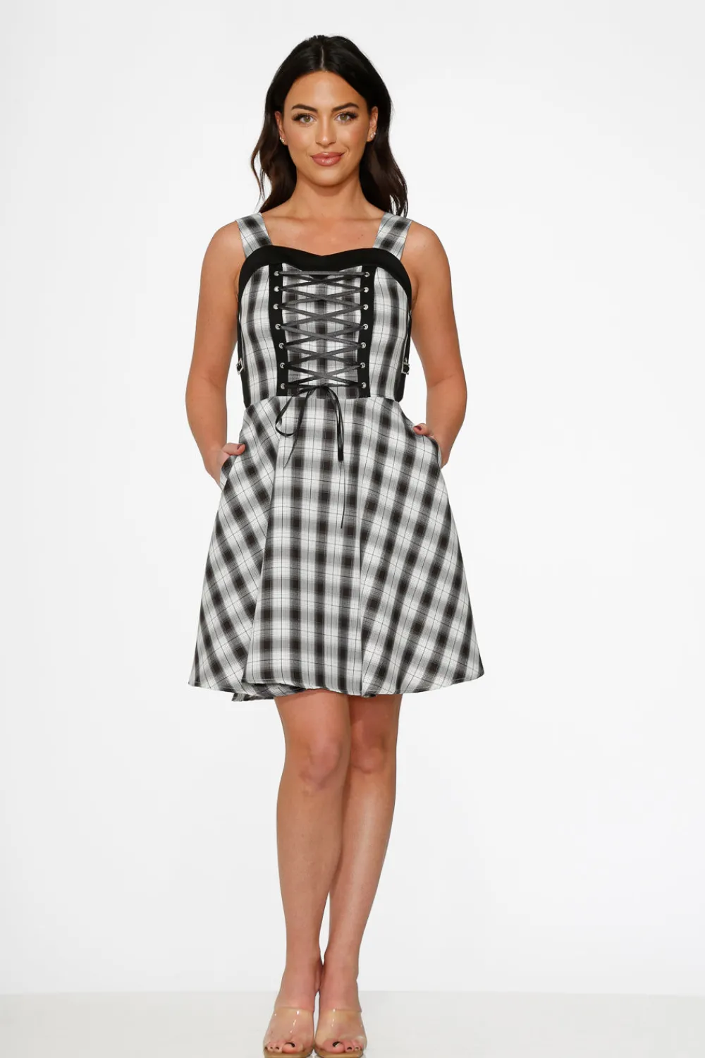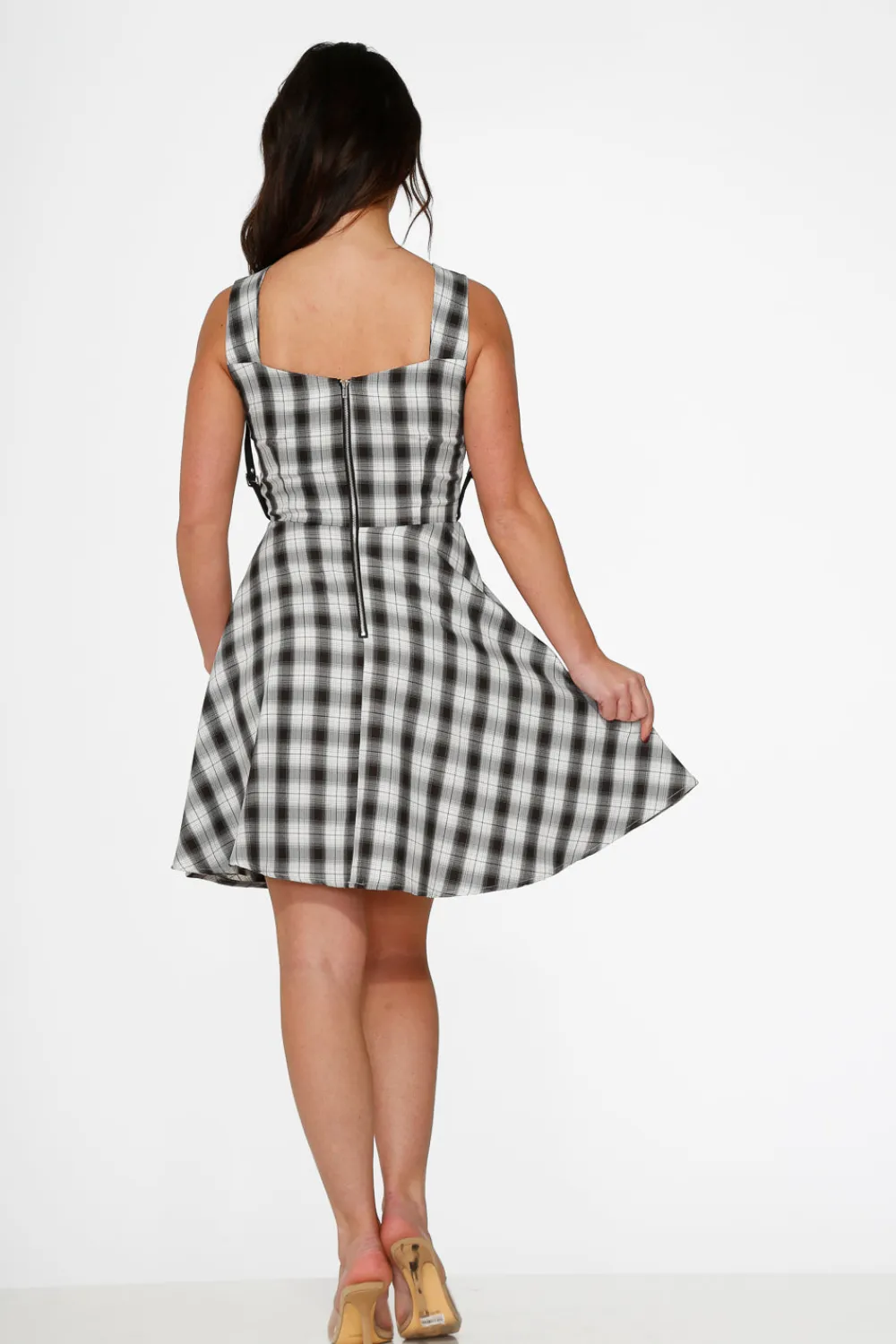 Sweet meets street in the Orchid Bloom Black & White Plaid Corset Dress. With its classic plaid print and striking lace-up corset bodice, this fit-and-flare number is full of bold attitude and vintage charm. Wide straps and a flouncy skirt keep things comfy and cute, while the cinched waist gives it that perfectly edgy twist.