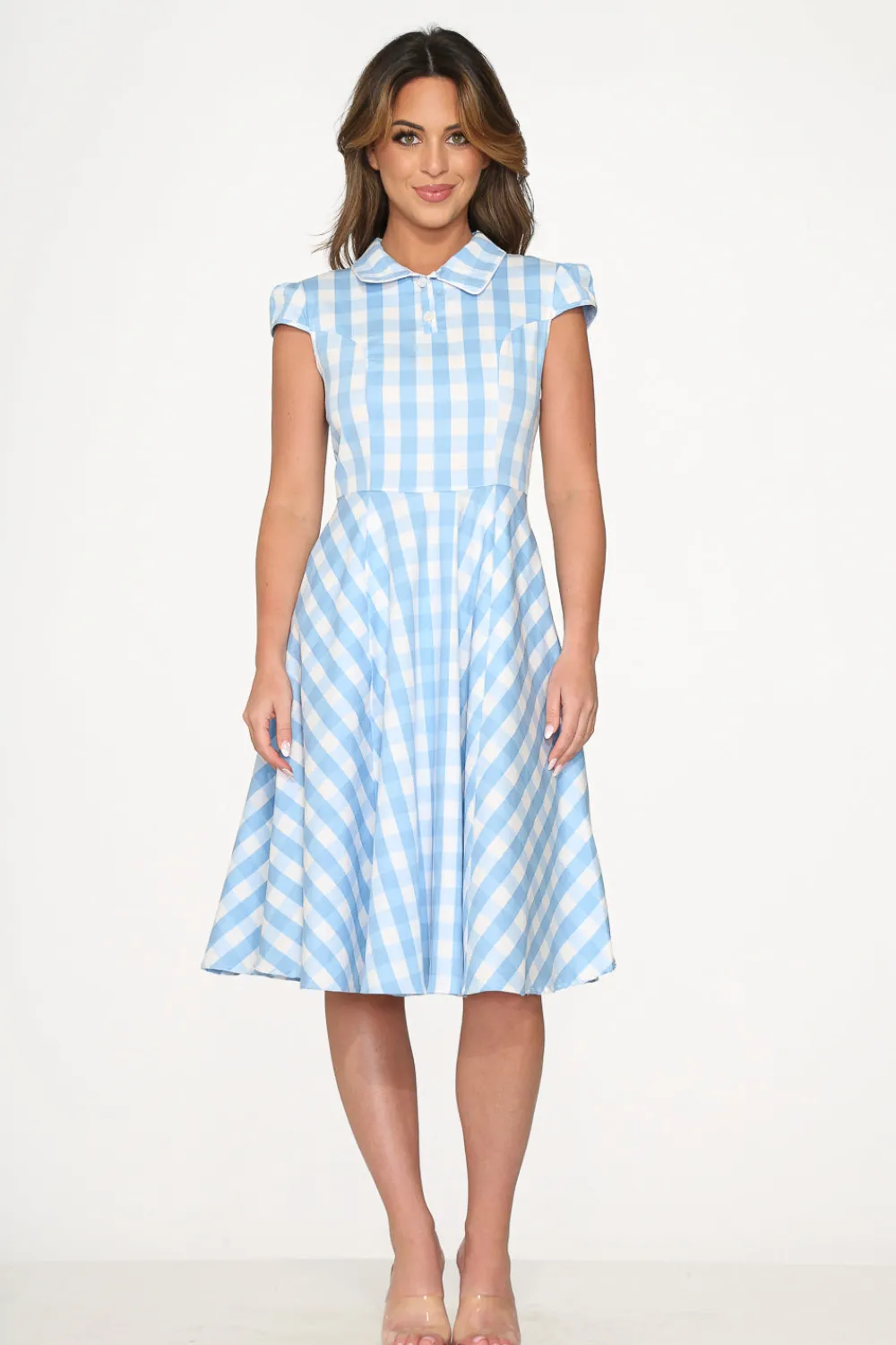 Make your next move in the Orchid Bloom Blue & White Checkmate Halter Swing Dress! With its playful gingham check and vintage halter neckline, this swingy number serves up classic charm with a fresh, flirty twist. Crafted from a breathable cotton-spandex blend, it’s made for warm-weather wanderings, garden parties, and twirls that win every time.