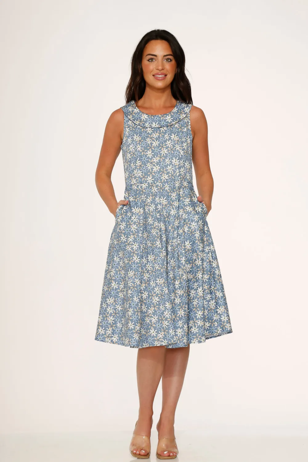 Orchid Bloom’s Blue Daisy Floral Swing Dress offers a perfect blend of playful charm and timeless elegance. Featuring a soft blue hue adorned with delicate daisy prints, this dress is ideal for casual outings, garden parties, or adding a romantic touch to your everyday wardrobe. With a flattering swing silhouette, it’s a versatile piece for any occasion.