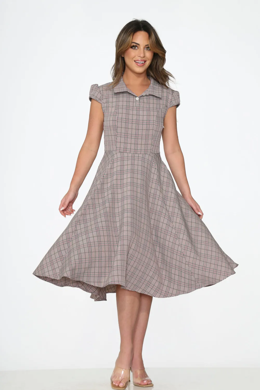 Orchid Bloom’s Brown Plaid Swing Dress blends vintage charm with contemporary comfort. Designed in a warm, earthy plaid, this dress offers a flattering silhouette that’s perfect for any season. Whether you’re layering it for a crisp autumn day or styling it for a chic evening out, this piece brings effortless elegance to your wardrobe.