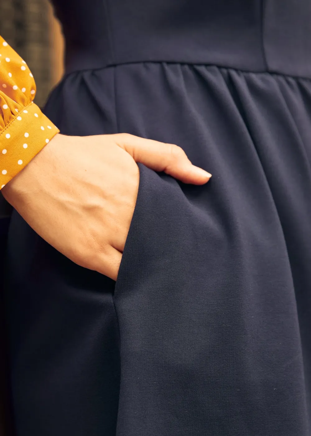 Twist and twirl in the Doo-Wop Daydreamer Contrast Dress in Stellar Speckle, a creation from our ModCloth namesake label. This dress combines navy and gold dot print with a comfortable knit fabric and a forgiving stretch. Finished with a zipper closure, this piece is both practical and eye-catching. Jazz it up with heels for celebratory soirées or add a cardigan for a cozy, fashion-forward office ensemble.