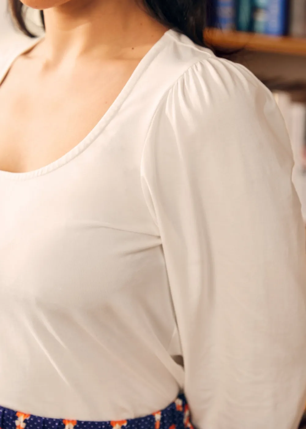Misty Morning Crewneck Tee from our ModCloth namesake label captures the serene essence of fall mornings. This balloon sleeve top, made from soft modal jersey, offers medium stretch for a comfortable fit that’s perfect for those lazy weekend coffee runs. Its ivory color reflects the soft glow of the season, making it a versatile piece to layer under cardigans or vests. Embrace the whimsical side of autumn with this charmingly simple, yet sophisticated tee.