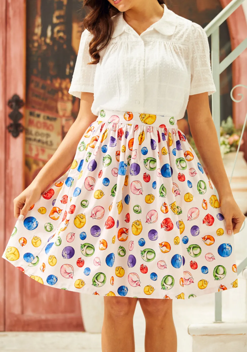 Nap in the sun’s glow with our ModCloth namesake labelsleeping cat print midi skirt, an ode to feline grace and laziness. Every pleat is a dreamy cloud of comfort with a waist cinched just right for comfort. The soft cotton poplin whispers stories of curling up with a good book or stretching out on a lazy Sunday afternoon.