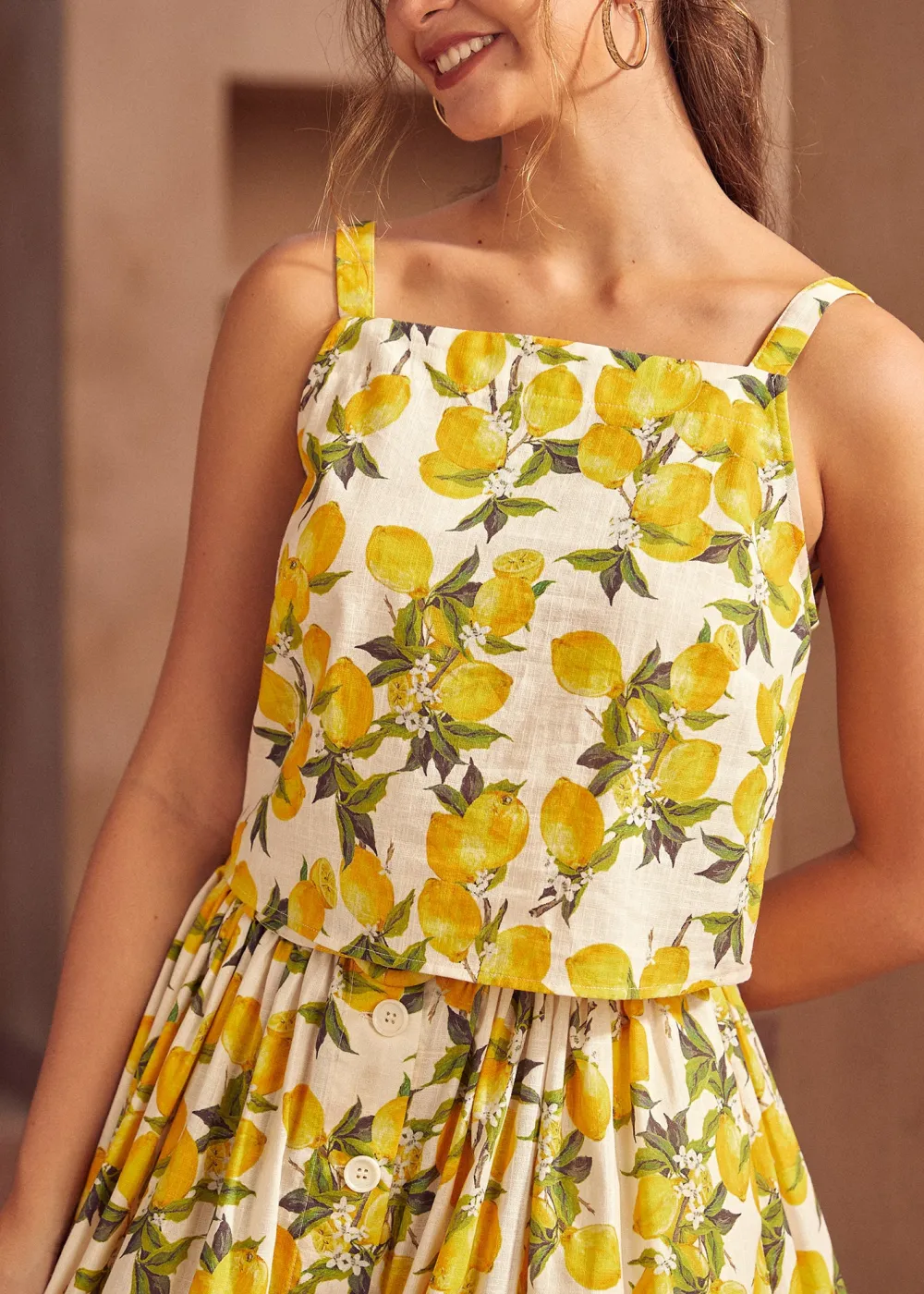 Step out in the sun with this charming lemon print tank top by our ModCloth namesake label, featuring an unconventional button-back detail that sets it apart. This sleeveless wonder is a testament to carefree days, crafted from soft fabric that ensures comfort from dawn till dusk. Whether paired with your favorite shorts for a day at the beach or layered under a light cardigan for those cooler evenings, it’s a versatile staple that sings of summer joys.