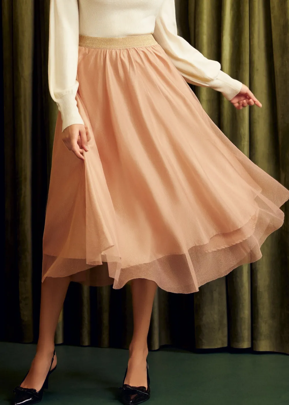 Celebrate soft and dreamy winter hues with the Time Capsule Tulle Midi Skirt in Peachy Keen, part of our ModCloth namesake label. This delightful skirt captures the essence of winter’s softer side with its warm peach tulle that gracefully falls in layers. The midi length is both practical and whimsical, making it perfect for family gatherings or a romantic winter stroll. Dress it up with a sequined sweater and ankle boots for an effortlessly chic look that feels like a festive occasion unto itself.