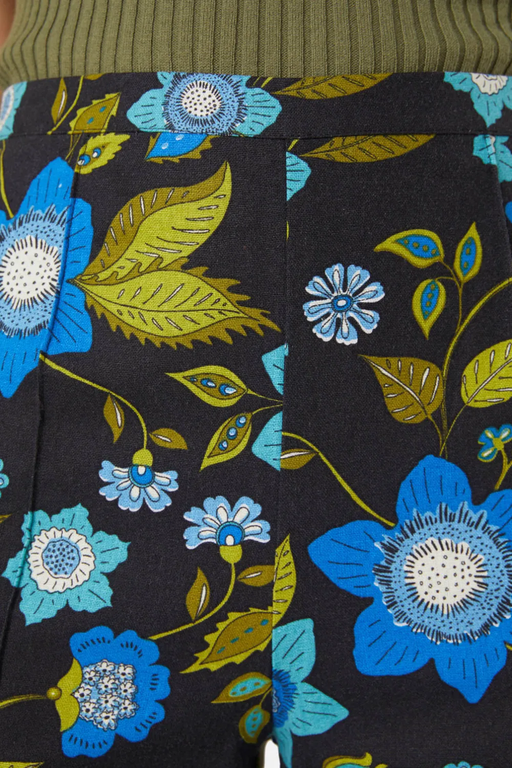 Slip into the Carmen Pant and let every stride bloom with a touch of retro romance. These aren’t mere pants; they’re a love letter to the free-spirited flair of the ’70s, adorned in a boho floral print that dazzles in vibrant tonal shades. Picture the elegance of a straight-leg silhouette paired with a pintuck feature that runs down each leg, whispering tales of style from a bygone era. The high-waisted fit accentuates your curves, hugging you like a long-lost friend, while the thin waistband and discreet side seam zipper ensure the canvas of your outfit remains as uninterrupted as a serene summer sky. Welcome the Carmen Pant into your wardrobe and watch your fashion narrative unfold with every wear, a story where every chapter is as captivating as the last.