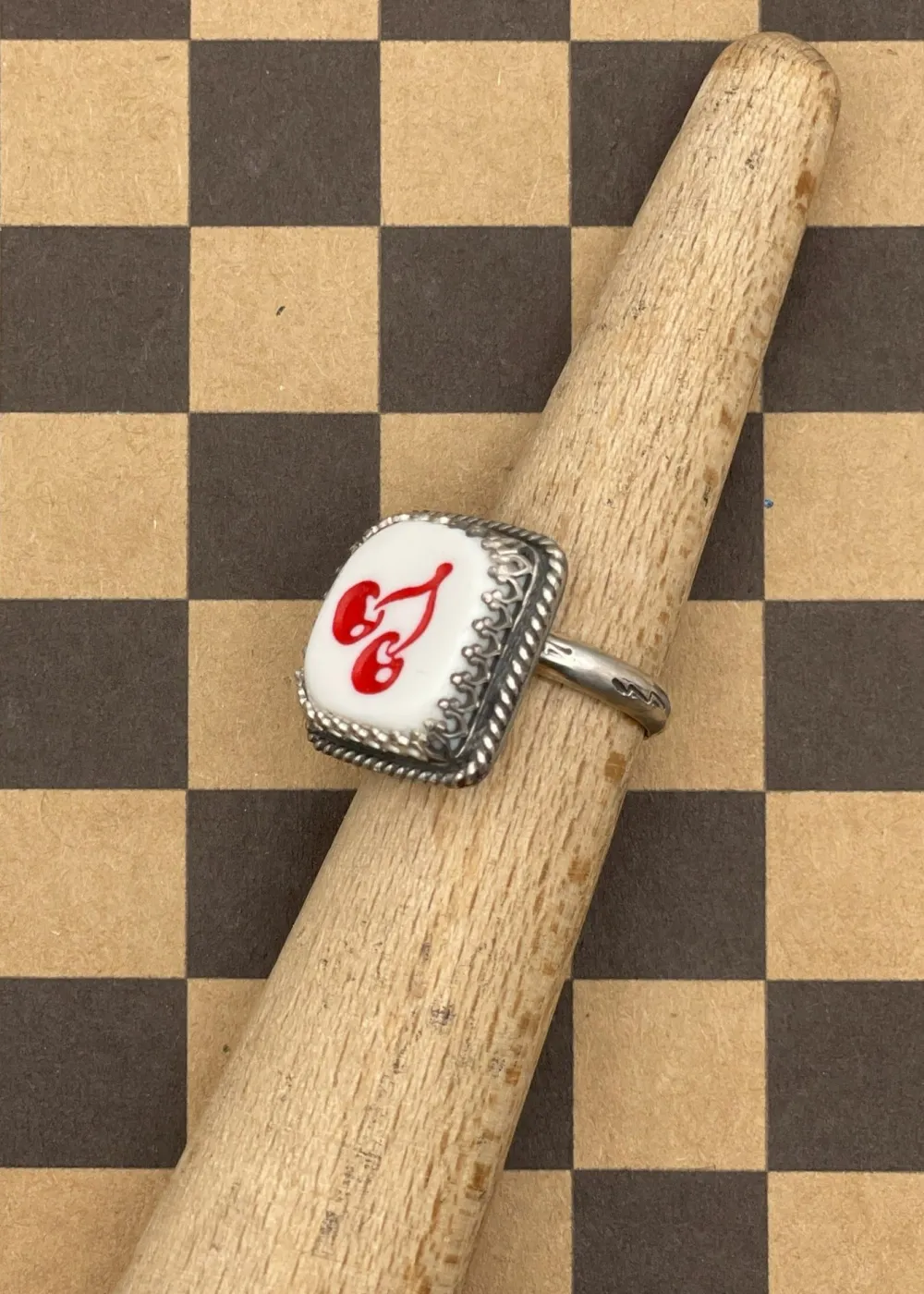 Handmade in California by Bog-Art-Studio, this sterling silver ring features a slot machine dice set in a gallery bezel with twisted deco wire, combining boldness and intricate detail. The adjustable size ensures versatility, perfect for any risk-taker or gaming enthusiast. Symbolizing luck, chance, and risk, the dice represent the thrill of gambling and embracing the unknown. Inspired by the energy of Las Vegas, this ring is a stylish tribute to fortune, adventure, and living boldly.