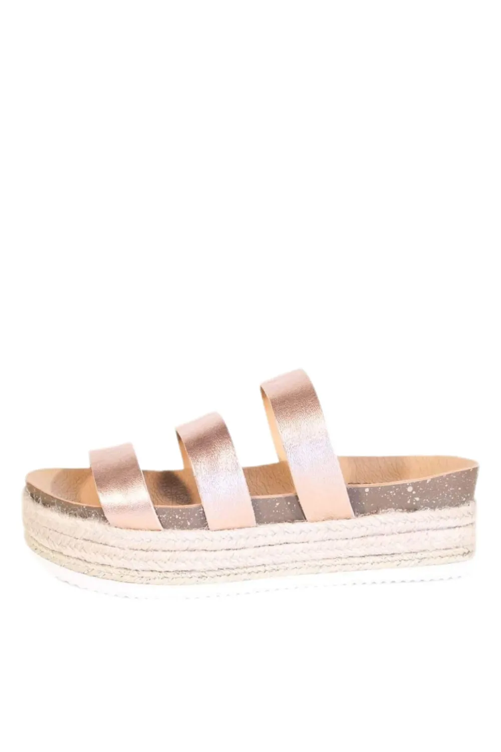 Featuring a heightened cork flat form sole and thick sporty straps, Chelsea Crew’s COSTA makes a modern-rugged fashion statement while providing support with your tri-strap that your feet will thank you for. This style is featured in rose gold, black and bone with a two-inch heel.