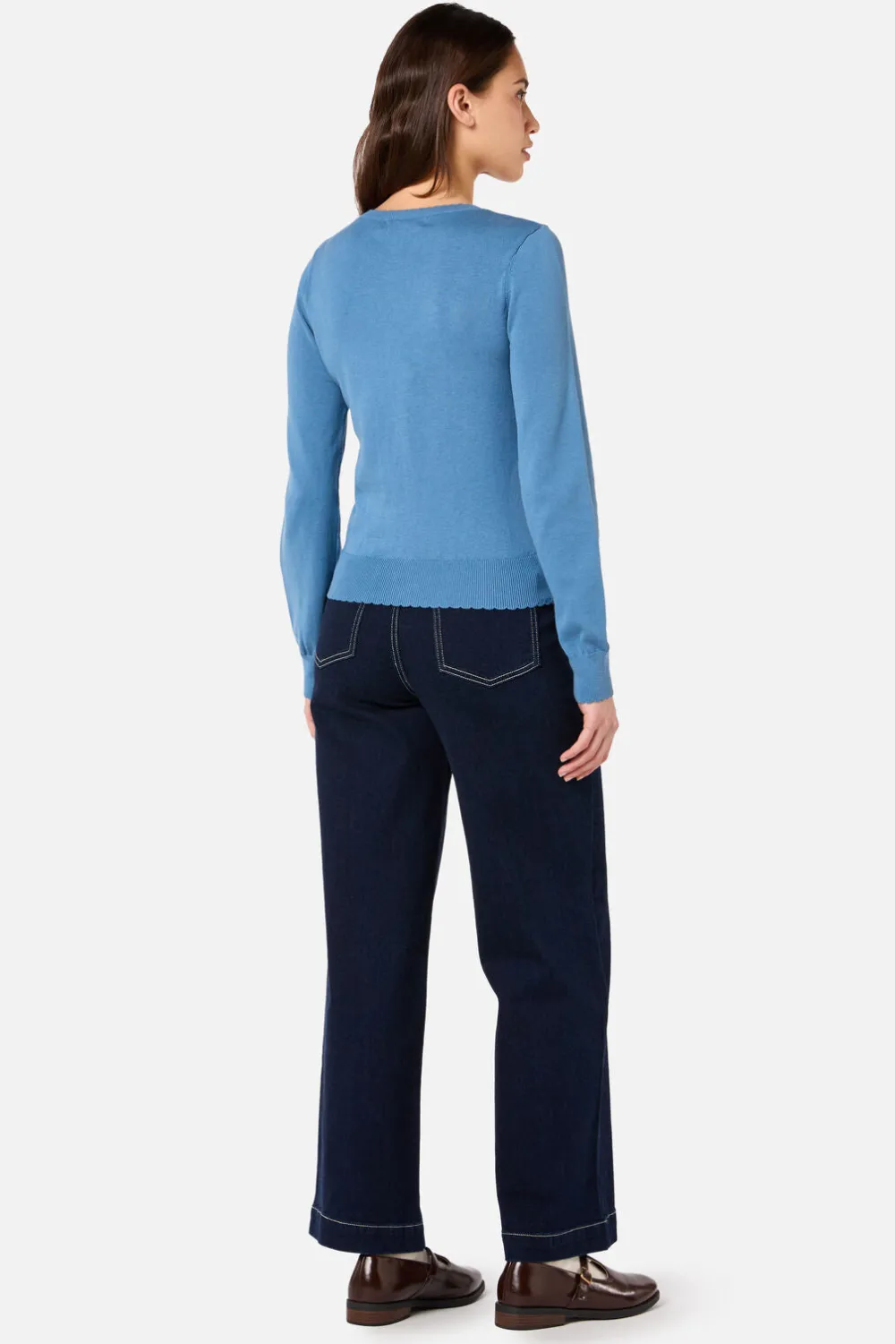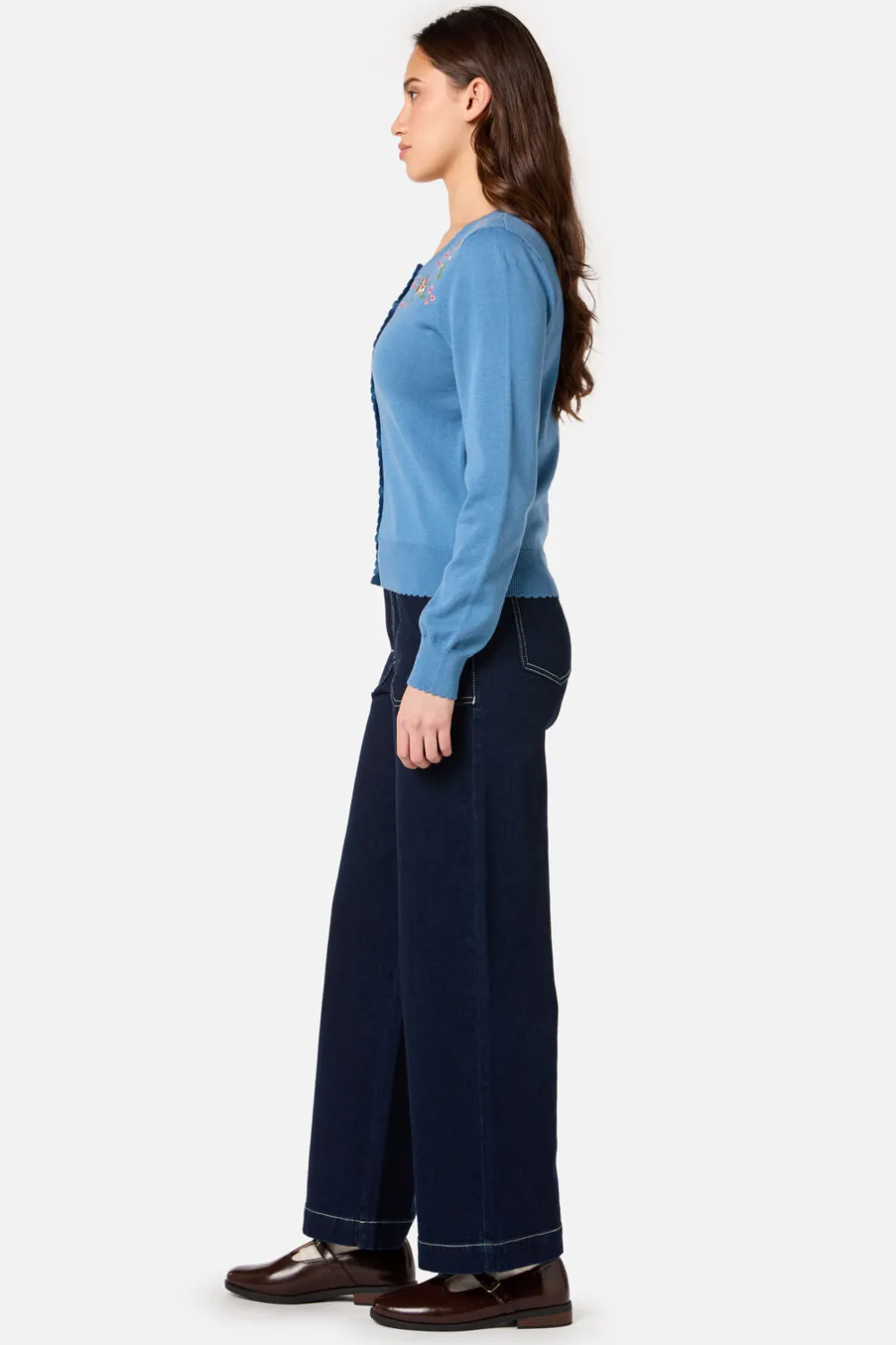 Add a dose of delight to your knitwear collection with the Cute Dogs Embroidered Cardigan by Princess Highway. This soft blue cotton cardigan features detailed embroidery of adorable pups and vibrant blooms, bringing playful personality to a classic silhouette. Finished with scalloped edges and a fitted shape, it’s a sweet layering piece for any dog lover.