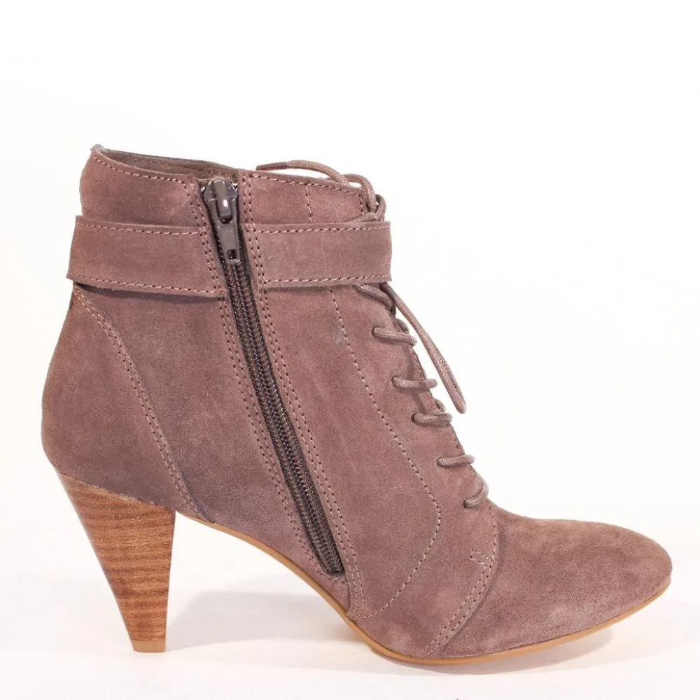 Made for strutting and turning heads, the Dakota Suede Booties by Chelsea Crew bring fierce energy to your wardrobe. Featuring a sleek suede upper, lace-up front, side zipper, and edgy buckle detail, these stiletto booties are the perfect mix of confidence and style. Step into the 3″ heel and own the moment—wherever you’re headed.