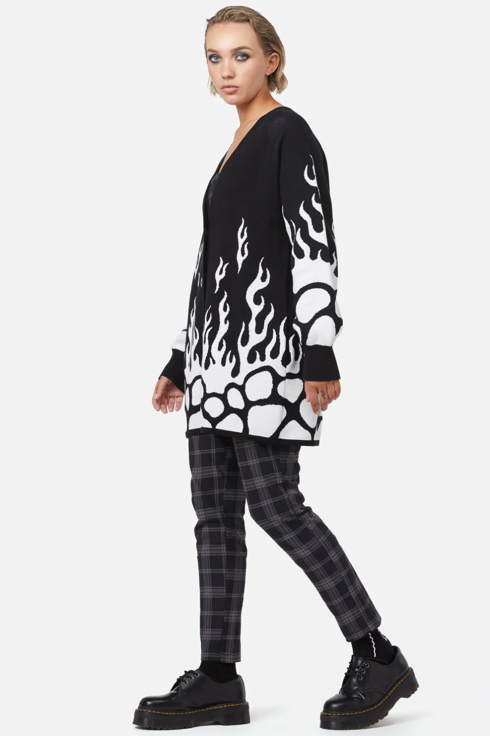 Embark on a style journey with the whimsical Intarsia Placement Cardigan by Dangerfield, featuring an alluring ‘Dark Tarot’ motif that weaves a narrative of divination and charm. The gentle embrace of pure cotton fabric ensures a breathable fit, whether you’re delving into the arcane or simply enjoying a breezy evening walk. Its long sleeves offer an embrace like a comforting shroud, while the ribbed neckline maintains a classic silhouette. Sway through your day in this black, knee-brushing garment, a perfect companion for a gallery stroll or a laid-back brunch. Enshroud yourself in this cardigan’s mystique and make every moment an enchanting tale of style and comfort.