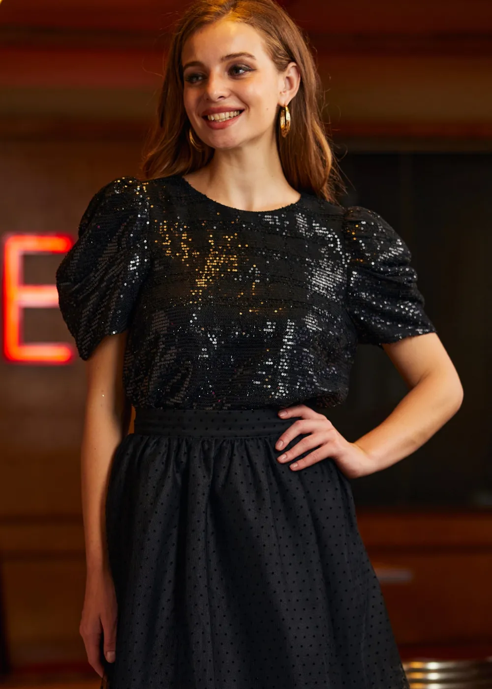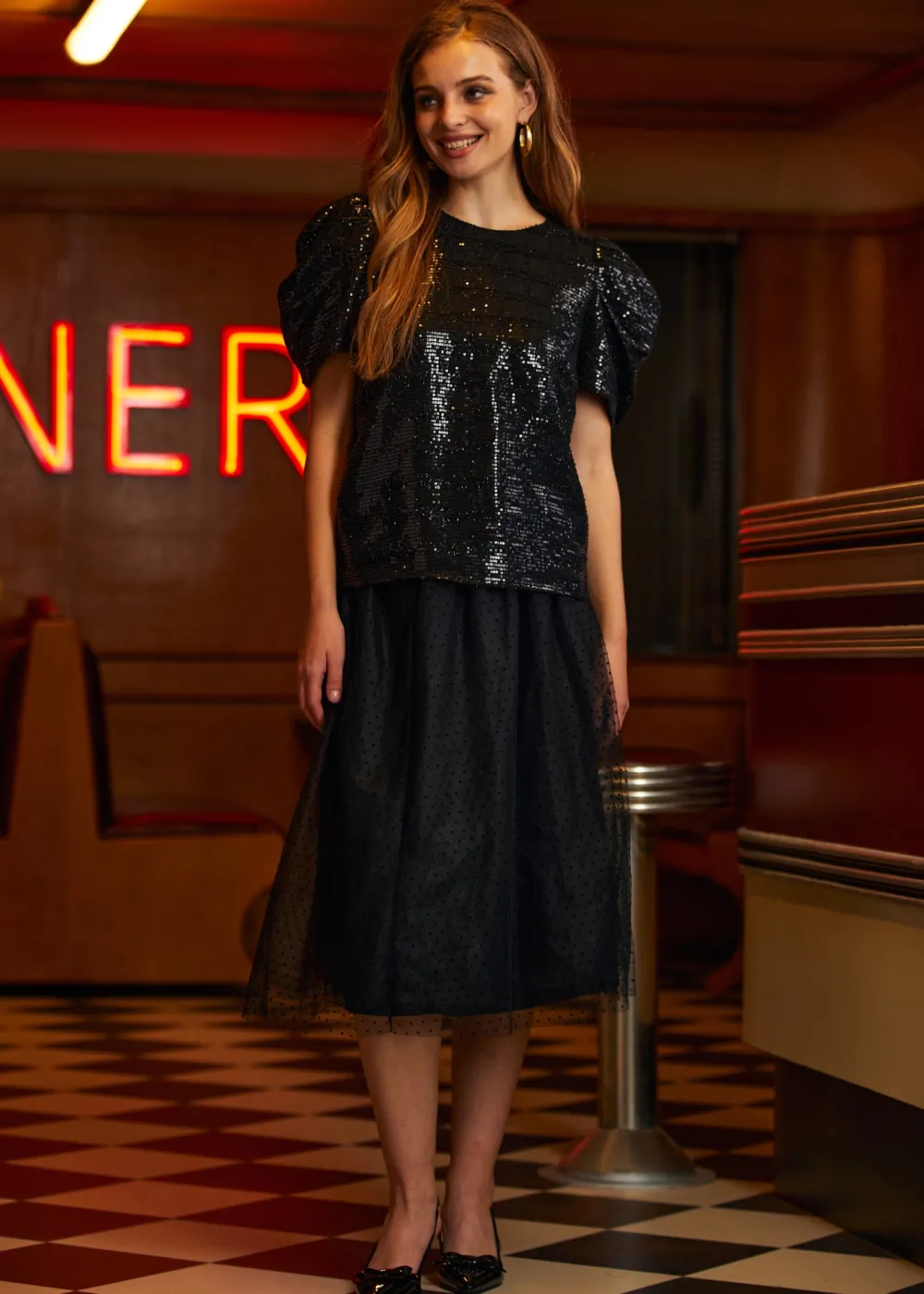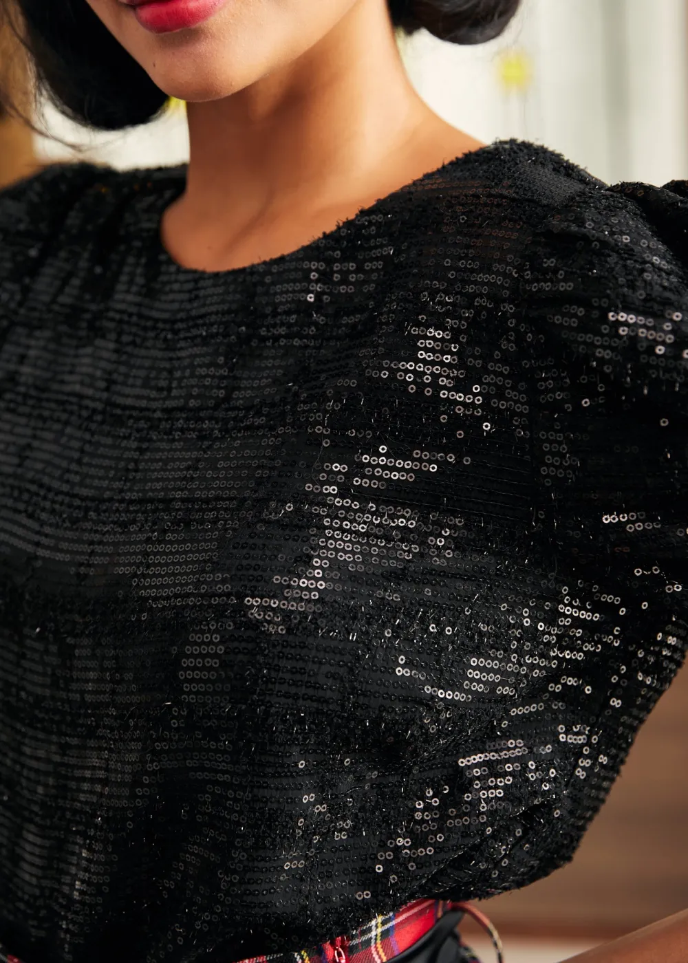Celebrate the season in style with the Festive Frolic Bubble Sleeve Crew from our ModCloth namesake label. Its deep midnight black hue and bold bubble sleeves are a homage to classic elegance and holiday mystery. This top pairs perfectly with both skirts and trousers, offering a versatile piece that’s equal parts coziness and sophistication. Whether you’re attending a glamorous holiday party or indulging in serene winter evenings, it’s a garment that embodies the magical essence of the season.