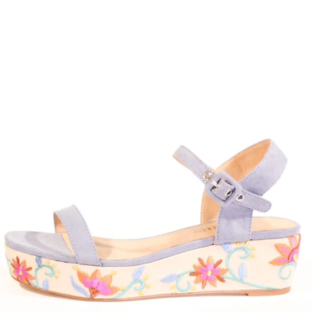 Heighten up your day in our embroidery wedge sandal! Strap on our FRIDAY for a fun and Summery look. This wedge comes in sky blue and black.