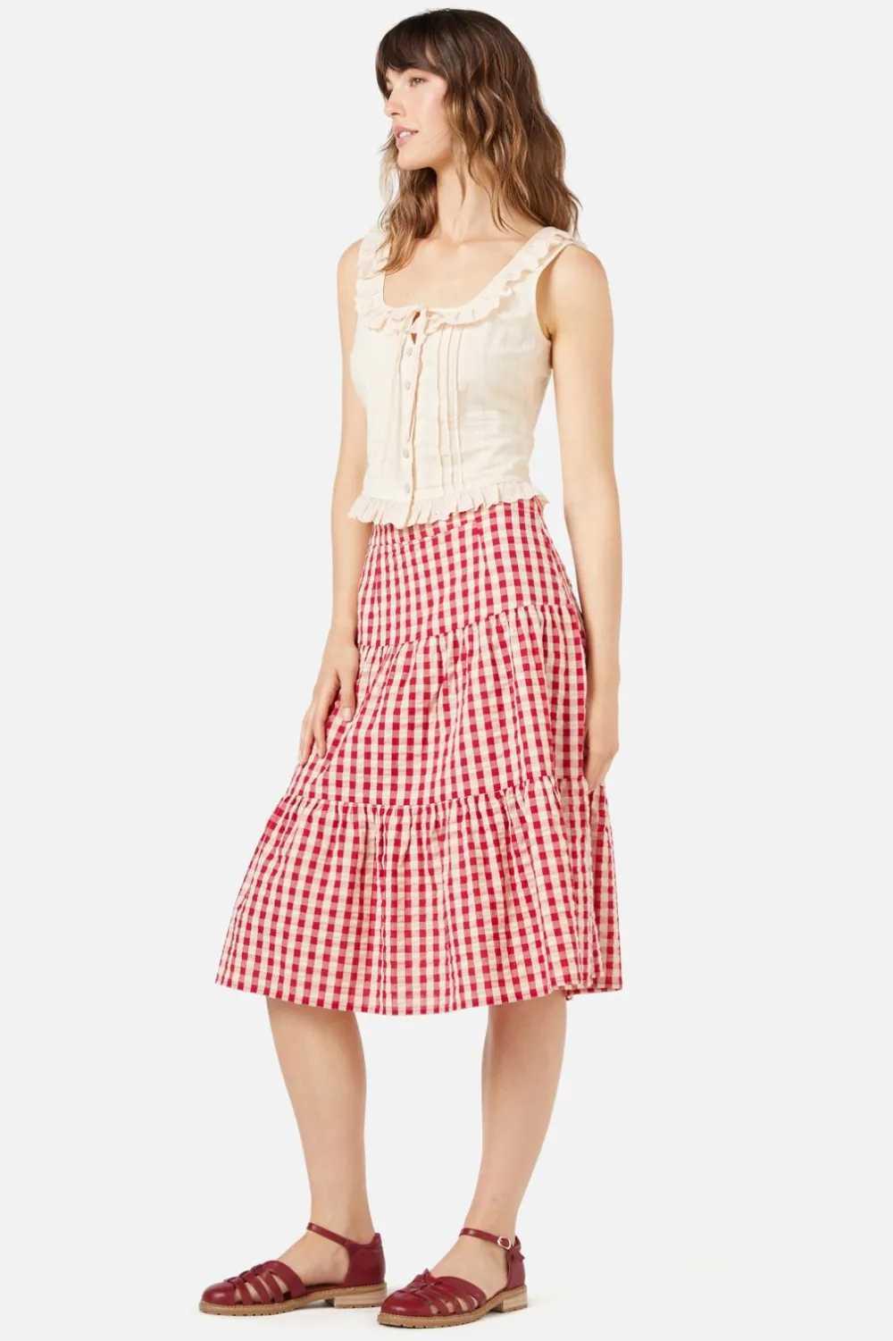 Greta Check Skirt by Princess Highway – A breezy red and cream gingham midi skirt, perfect for summer outings and picnics.