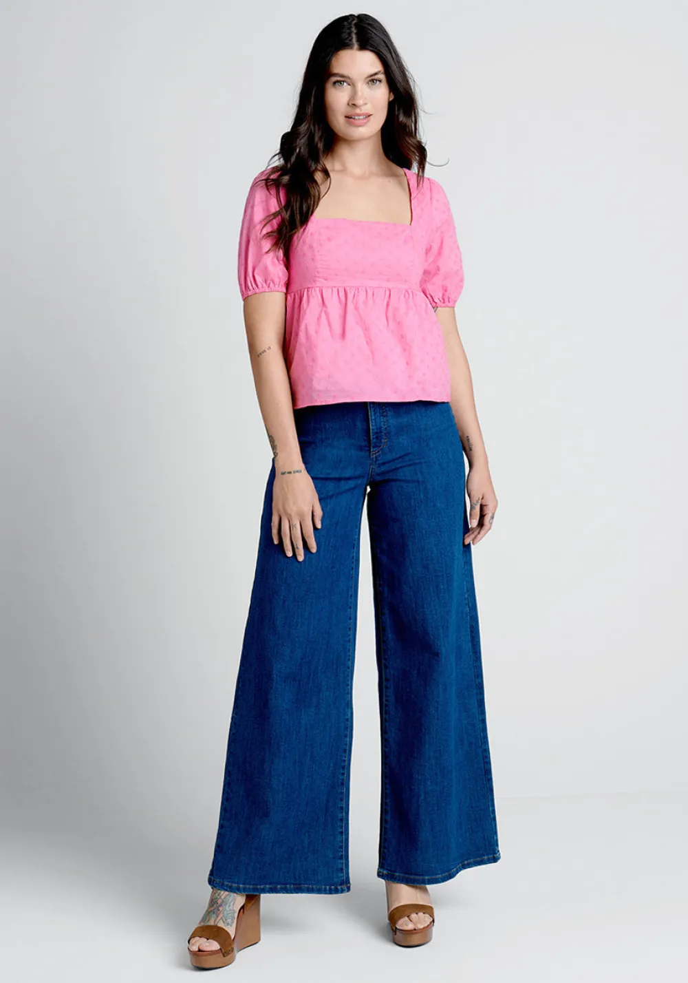 Made from a bright pink-hued cotton dobby weave, this ModCloth namesake label top has the perfect amount of prairie inspiration along with a timeless silhouette to be a favorable addition to your spring wardrobe rotation. Featuring intricately embroidered and ultra-charming Swiss dot daisies all over, this bold babydoll blouse boasts a flattering square neckline, tie-back closure, gathering at the empire waist, and short puff sleeves. A great piece to wear with your favorite high-rise jeans and boho-chic shoes of your choice for an ultimate cottagecore look.