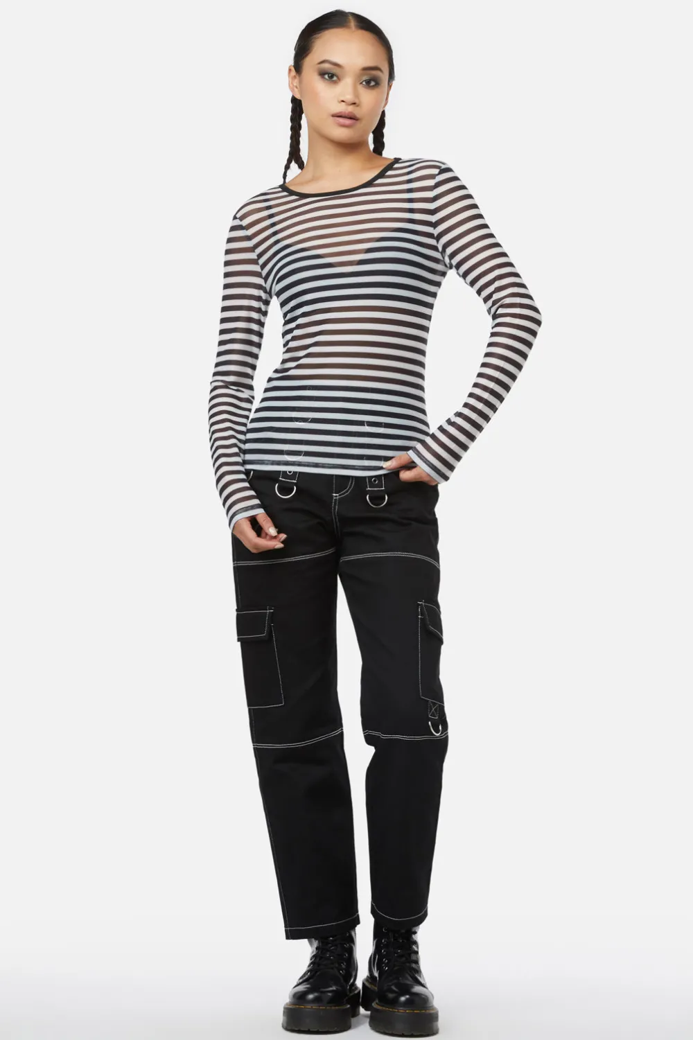 Dive into a whimsical world with the ‘Jiji’ Stripe Mesh Top by Black Friday, a delightful blend of playful design and sleek functionality. Crafted from a stretchy polyester-elastane mix, this top offers a figure-embracing fit that moves with you, making it a fantastic choice for both a busy day and an energetic night out. The black and white striped pattern, inspired by our beloved ‘Jiji’, adds a dash of fun to the classic mesh, while the round neckline and long sleeves create a harmonious balance of coverage and allure. Slide this top on for art gallery openings, creative workshops, or any event where style and comfort must go hand in hand.