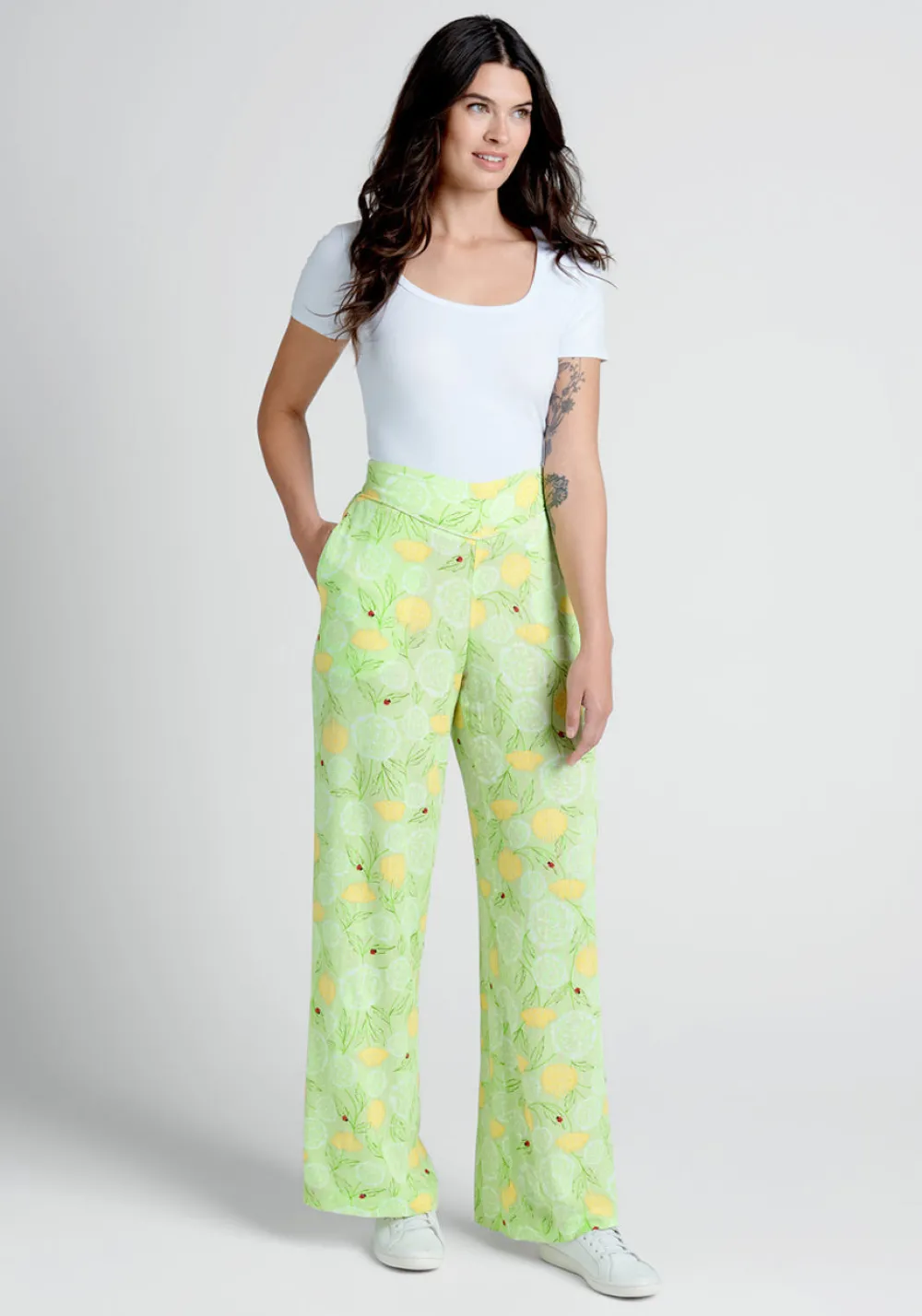 Keep your spring and summer wardrobe looking fresh and feeling easy with these adorably elevated, minty green pull-on pants from our ModCloth namesake label! Crafted from a lightweight crepey weave and covered throughout in a whimsical, hand-drawn print of willowy white and yellow dandelions that are being visited by the cutest colony of ladybugs, these V-front pants boast a wide, high-rise waistband with an elasticized panel at the back for ease of fit, handy side pockets, and a breezy full-length, wide-leg silhouette.