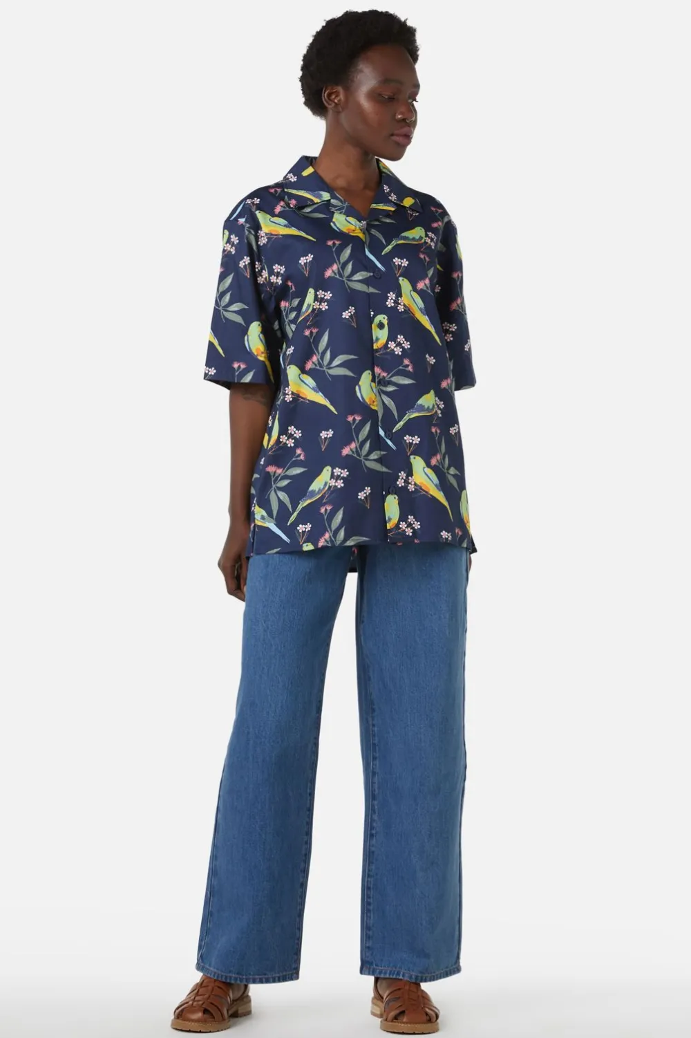 Why whisper when you can squawk in style? The Parrot Shirt is a vibrant tribute to one of Australia’s most beautifully bright yet critically endangered birds, boasting a print that’s as lively as the parrot itself. With feathers of green and yellow, dashes of blue, and a cheeky orange belly, this unisex shirt is a conversation starter at any gathering. Designed to embrace him, her, and they with open wings, it features a laid-back revere collar, button-through front, and a relaxed fit that promises comfort for every body. Short sleeves and softened cotton fabric make it a breezy choice for any adventurer wanting to make a statement in the wild urban jungle or the tranquil countryside. Spread your wings in the Parrot Shirt, where fashion takes flight in the name of conservation.