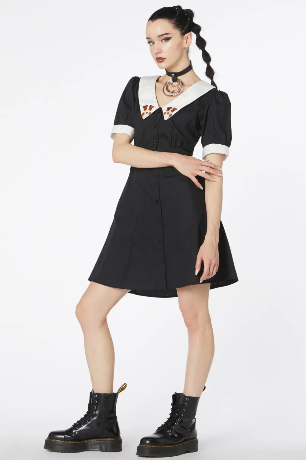 Dress to impress with a playful twist in Dangerfield’s Embroidered Dress, where fun meets flair in an adorable ensemble. At first glance, this dress charms with its sophisticated black organic cotton poplin, but a closer look reveals the whimsy at its heart: a puppy motif embroidered along the contrast collar, infusing a dash of delight into your day. The center-front button placket adds a touch of vintage nostalgia, making it easy to slip on or off. This dress is a testament to staying comfortable while showcasing a unique twist on classic dressing. Whether you’re browsing the weekend market, heading out for a casual brunch, or attending a laid-back office meeting, this dress ensures you’re comfortably chic and eternally enchanting. Prepare to fetch compliments and smiles as you go about your day in this heartwarming piece.