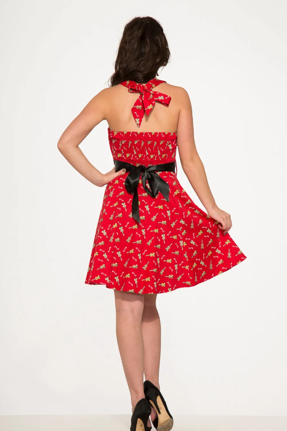 Cue the compliments in the Orchid Bloom Red Violin Halter Swing Dress! Featuring a charming allover print of violins and bows atop a bold red backdrop, this halter-neck beauty strikes a perfect harmony between playful and poised. The full swing skirt adds vintage flair, while the soft cotton-spandex blend makes every twirl feel as easy as a Sunday serenade.