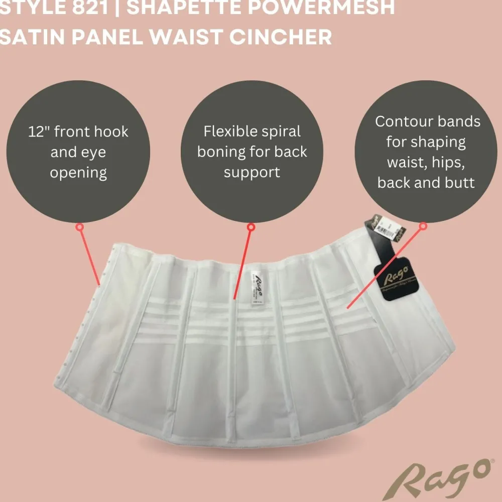 This waist cincher features power-net fabric, supportive boning and fabric made for comfort and fit. This piece is made of75% nylon and 25% Invista Lycrawith two-way stretch with a special satin finish.