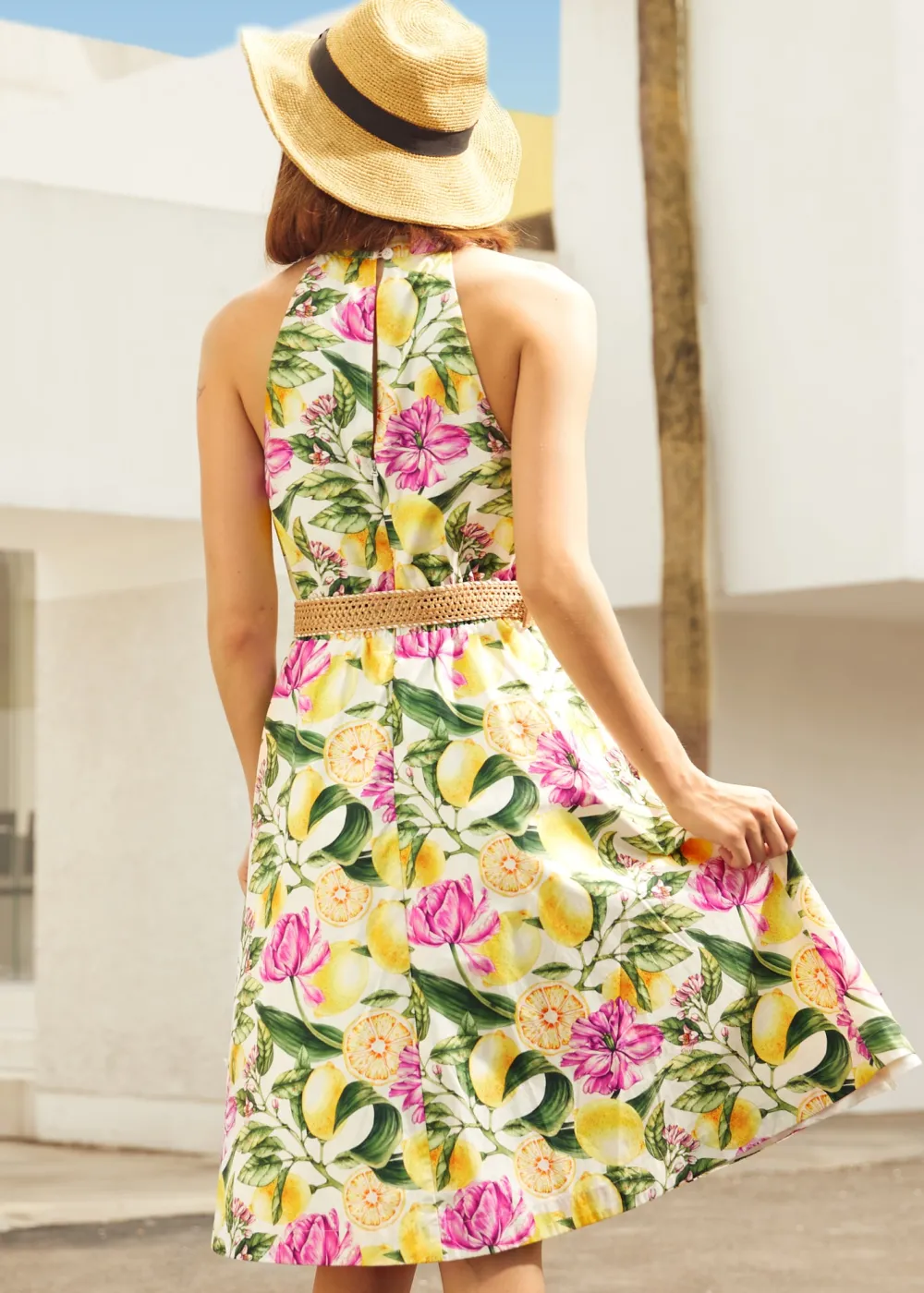 Turn every sidewalk into a sun-soaked escape with The Citrus Grove Getaway Dress, a vacation-ready delight from our ModCloth namesake label. Featuring a playful halter neckline, flirty fit-and-flare silhouette, and a lush print of lemons and blooming florals, this cotton cutie is made for warm-weather wanderings.