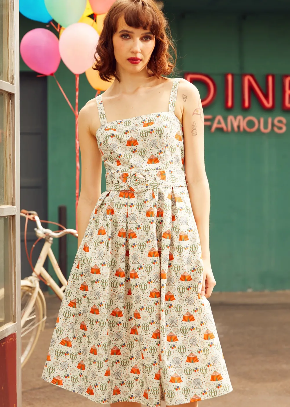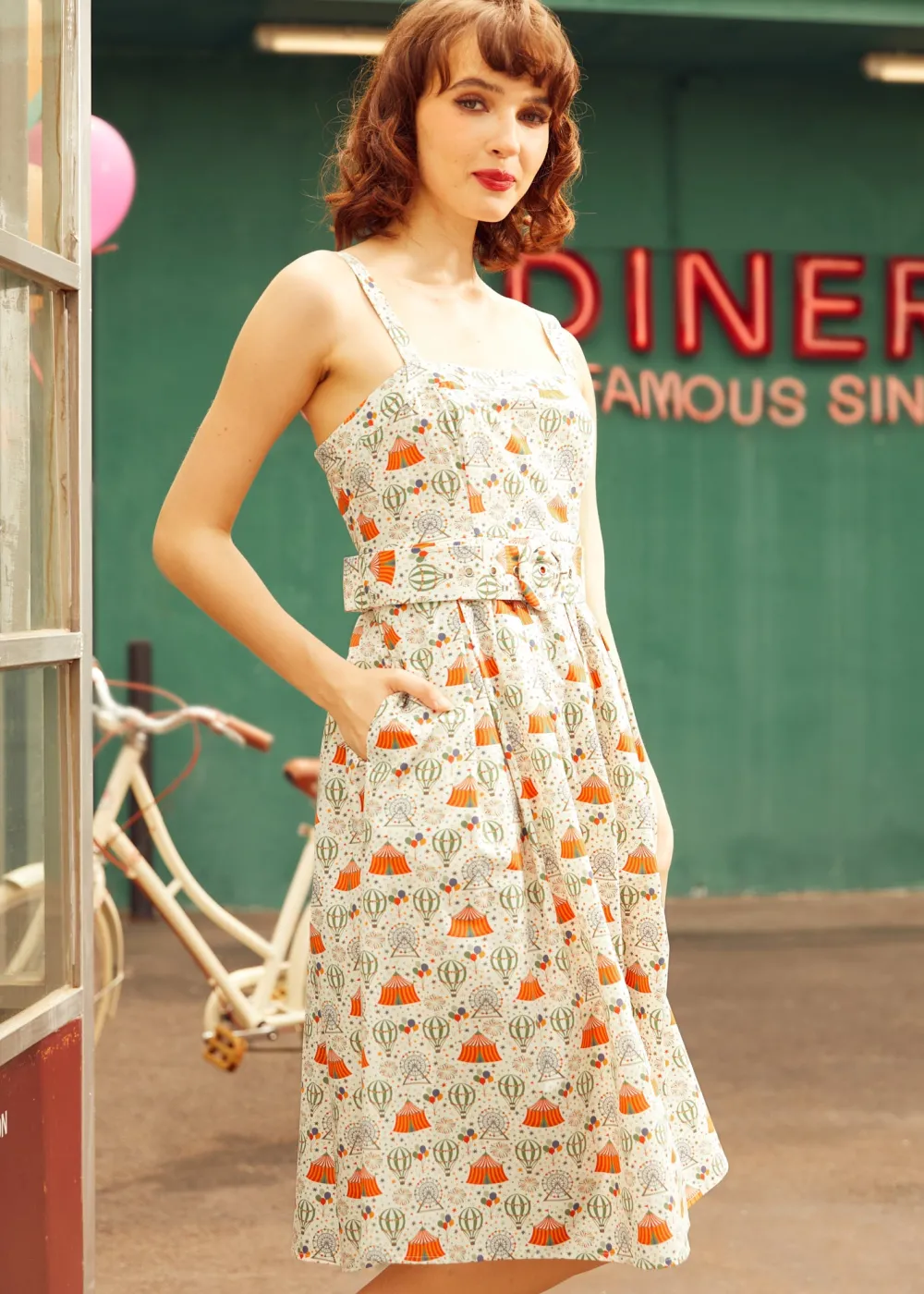Buckle up for charm overload in The Up, Up & Adorable Dress! Designed by our ModCloth namesake label, this cotton cutie features a vintage hot air balloon print, a belted waist, and crisp box pleats that practically beg for a breeze. With its square neckline and flattering A-line shape, this sleeveless style is made for ice cream dates, carnival rides, and summer days that drift by like clouds in a candy-colored sky.