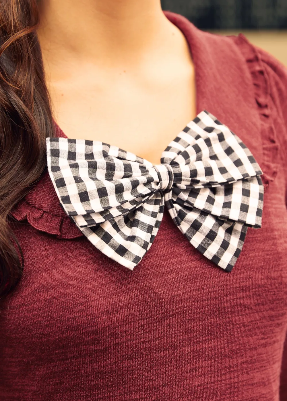 Celebrate in style with the Touched by Time Ruffle Accent Dress in Crimson Embrace. Crafted from knit fabric with a medium stretch, this dress boasts a dark red color reminiscent of joyful Christmas décor. The ruffle accents add a romantic flair, while the contrast bow ensures your look stands out with a traditional yet bold statement appropriate for any yuletide celebration.